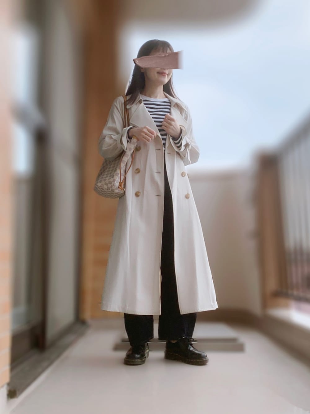 トレンチで大人っぽくしつつ、ボーダーとデニムでカジュアルに仕上げた好感度スタイル💙 足元はマーチンで✨ GU×rokh可愛いですね🥰 誰か着てくれないかな🥰(自分で買え)