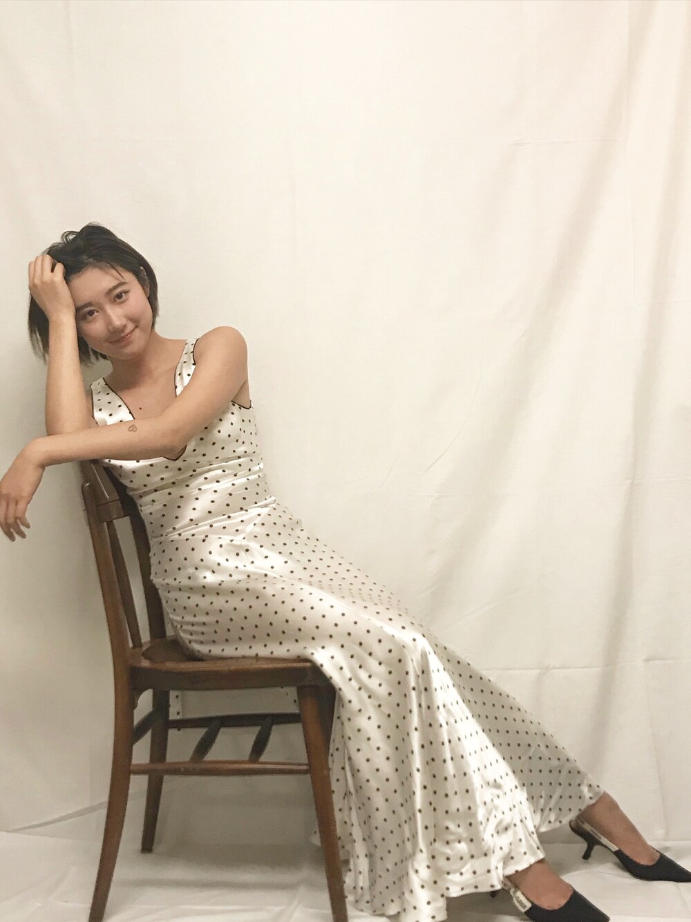 ワンピース:Ganni 靴:Dior