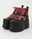 Parade錦糸町(Parade錦糸町)のスニーカー「@**ヨースケYOSUKEウィメンズアンクルワッペンシルバーレースフック厚底スニーカー2601142」を使ったコーディネート