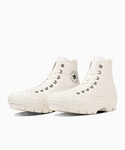 【CONVERSE】ALL STAR CHUNK HI コンバースオールスター チャンク HI オールスターのソールアレンジモデル。 凸凹とアーチの曲線が特徴的なラグソールを採用。 ブーツライクに履けて足元にボリューム感をプラスしながらも、ソールとアッパーを、同一カラーでまとめてすっきりとした印象に。 モノトーンで仕上げたアンクルパッチや、ガンメタルのハトメもポイント。