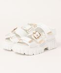 【Parade】厚底ラギッドソールスポーツサンダル ボリューム感がかわいい、ラギッドソールのスポーツサンダル。 3連のベルトで甲をしっかりホールドして足にフィットします。 ストーム3cm、ヒール5cmのソールは全体がEVA素材でクッション性が高く、長時間の歩行も疲れにくい。 ソックスで合わせても、素足でも◎ ホワイトソールで、ほどよいスポーツ感をコーディネイトにプラス。
