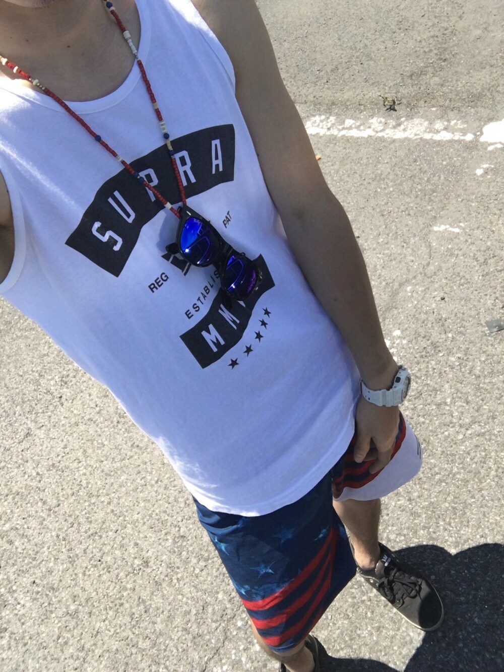 今日もヒトカゲ探しです💪 色白なので日焼けしたいと思ってタンクトップ👳🏿👳🏿 下のハーパンは海パンですよん、