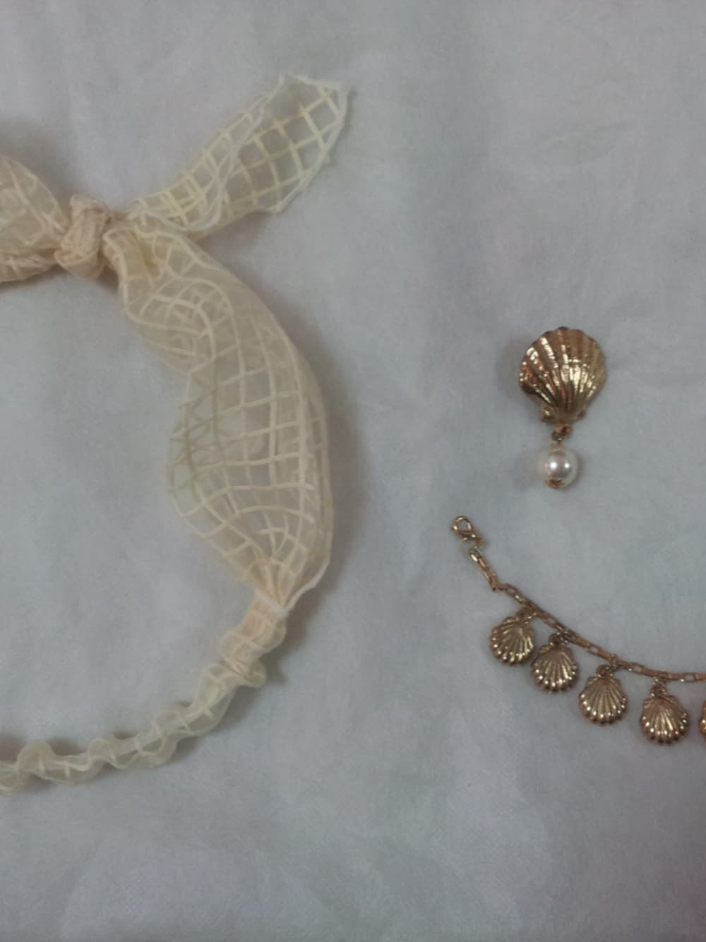 シースルーのヘッドアクセとシェルアクセで合わせてみました♡