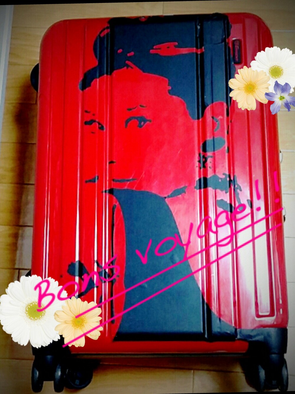 DYS♡オードリーヘップバーン キャリー♡ ウォールステッカーをキャリーに貼りました♡ 空港でも最高に目立つのでw 見付けやすくて最高です♡ ロストバゲッジする確率も少ないと思われます(o^^o)♪