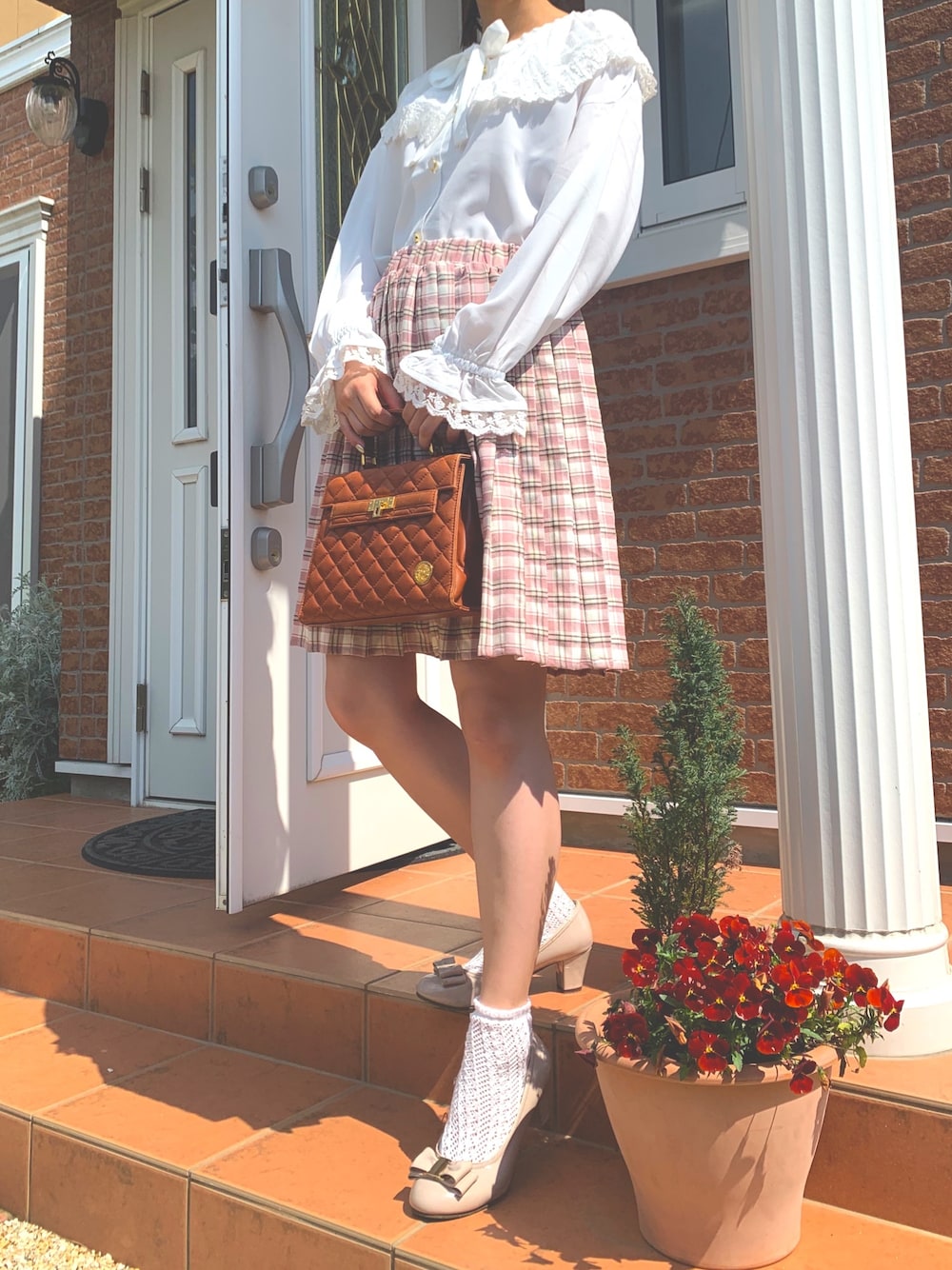 パラビオンでは珍しいミニスカコーデ⸜₍*̤̥͚₎⸝ チェックのミニスカートに、 襟の広いブラウスを合わせて 制服風に仕上げました♩♩