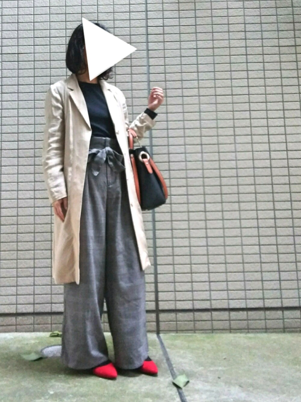 ご覧いただきありがとうございます🍀😌🍀 グレンチェックのワイドパンツの秋コーデです🎵 トップスは綿100%の安心素材☺️ ちなみにアウターは数年前に買った、テロンチのようなロングテーラードのような薄いコートです。 このぐらいの中途半端な気温にピッタリで、とても活躍しております💪