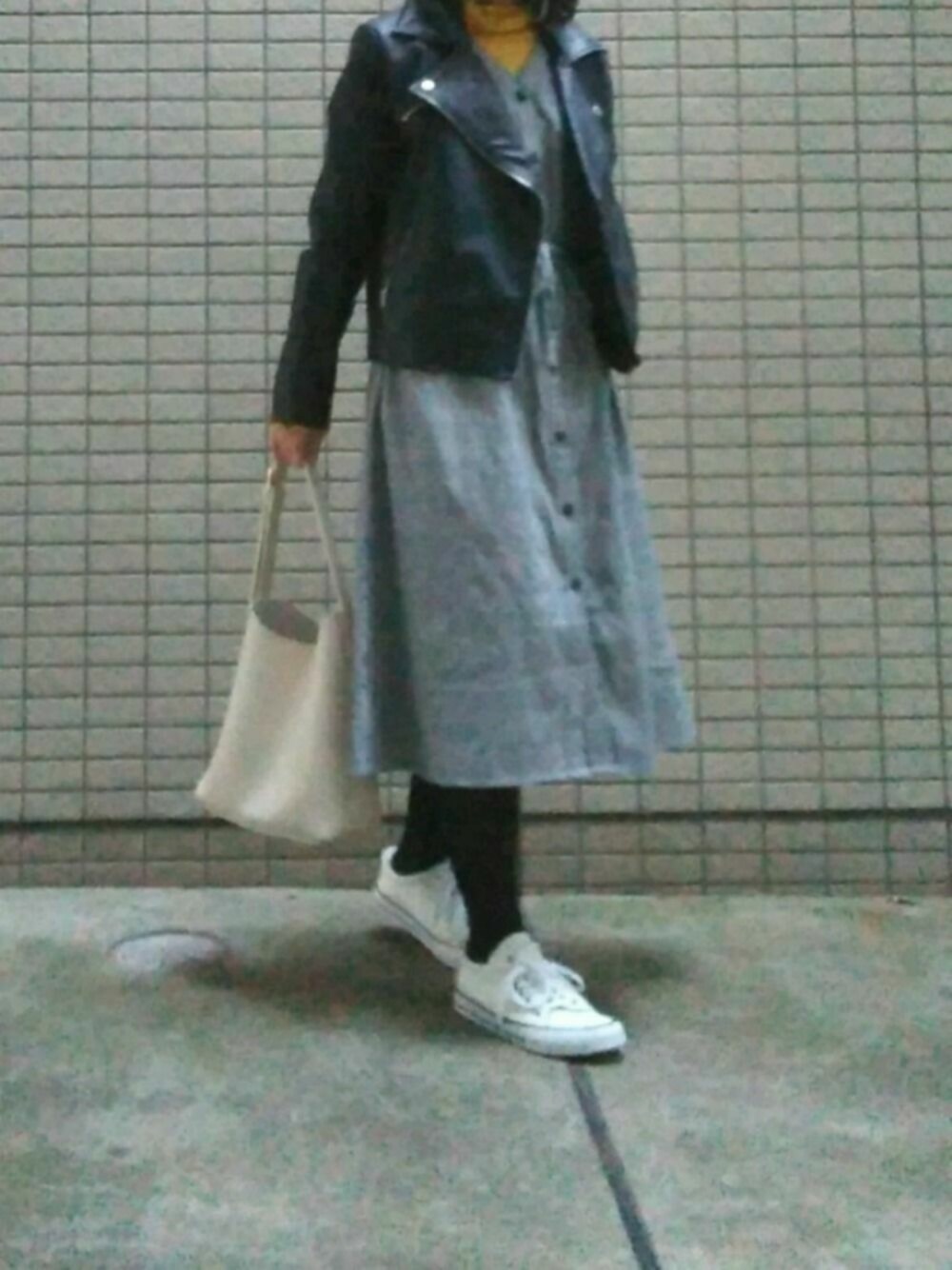 ご覧いただきありがとうございます🍀😌🍀 チェックのガウンワンピのコーデです。 タイツは綿タイツであったか❤️ インナーのマスタード色のカットソーも綿素材です。