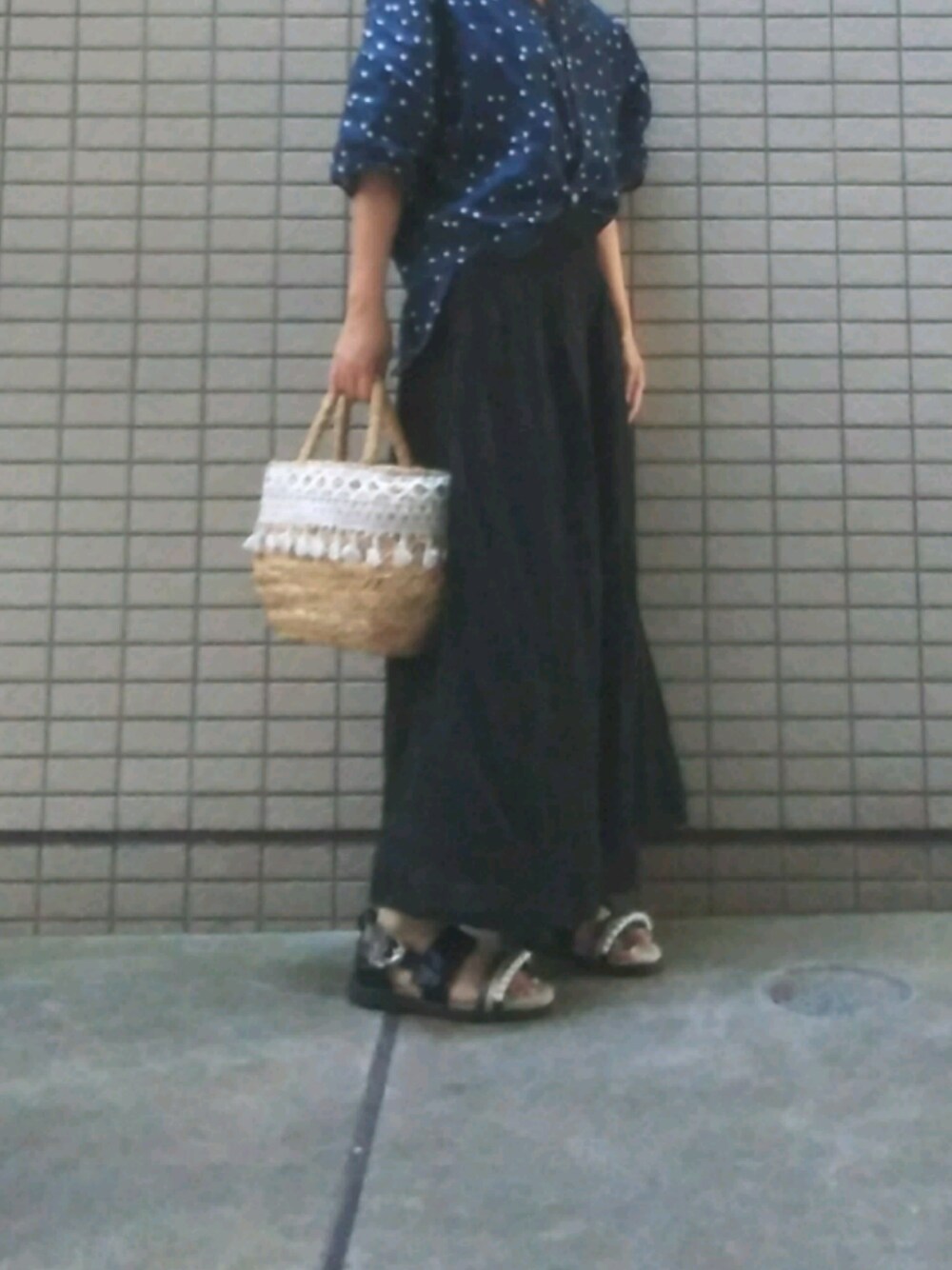 parcaのシャツ/ブラウス「リネンドットVネックブラウス」を使ったコーディネート