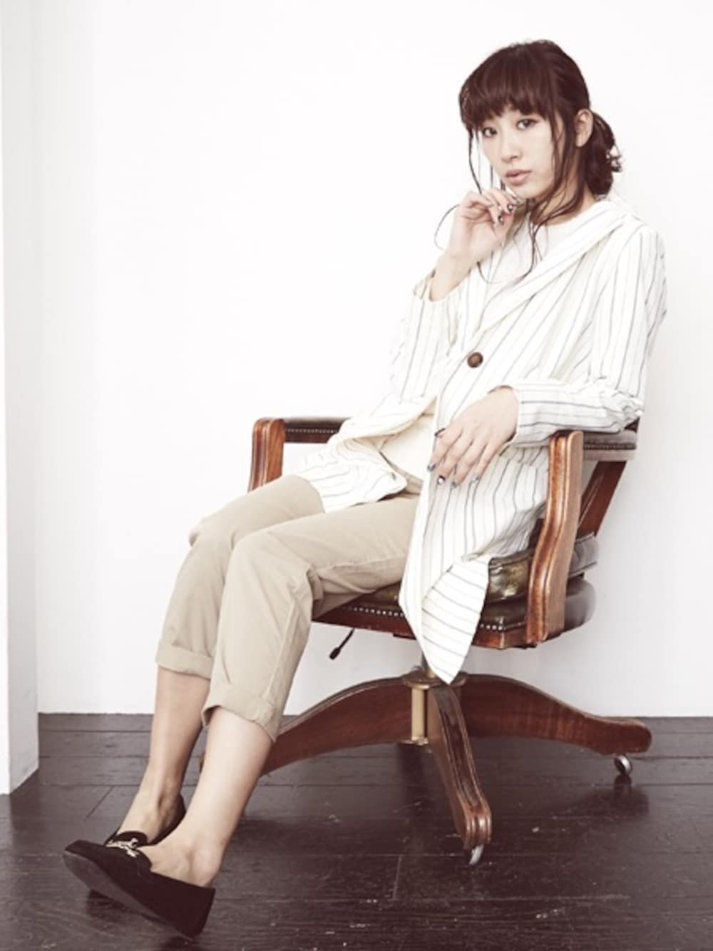 Parfum snapのチェスターコート「Parfum de Charmant Fleur/パルファムドゥシャルマンフルール/stripe chesterfield coat(ストライプチェスターコート)」を使ったコーディネート