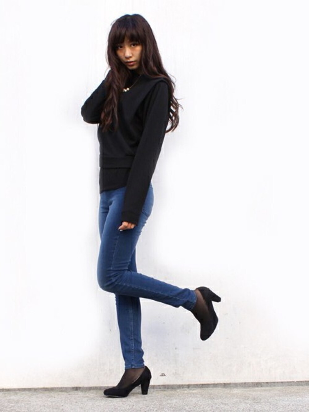 2wayで着れる裏毛カットソー。 パールネックレスをアクセントに♡