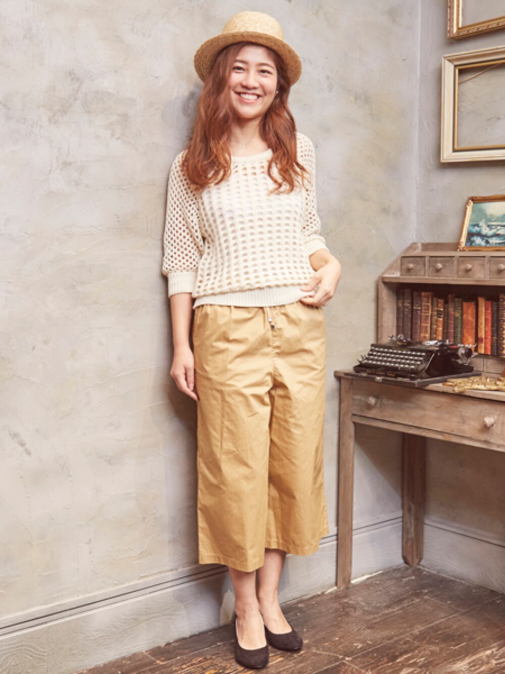 透かし編みのニットは肌寒かったり暖かかったりするこの季節にマストなアイテム☆ トレンドのガウチョとの相性もピッタリです♡