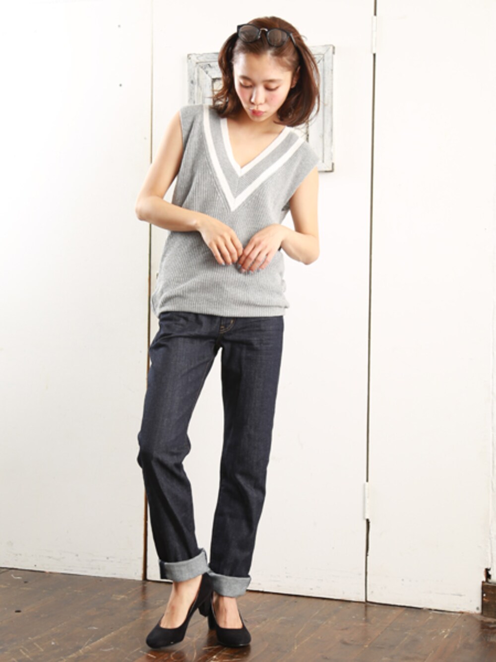 今年の本命チルデンニットのノースリーブは1枚でもかっこ良くきまるので気に入ってます☆