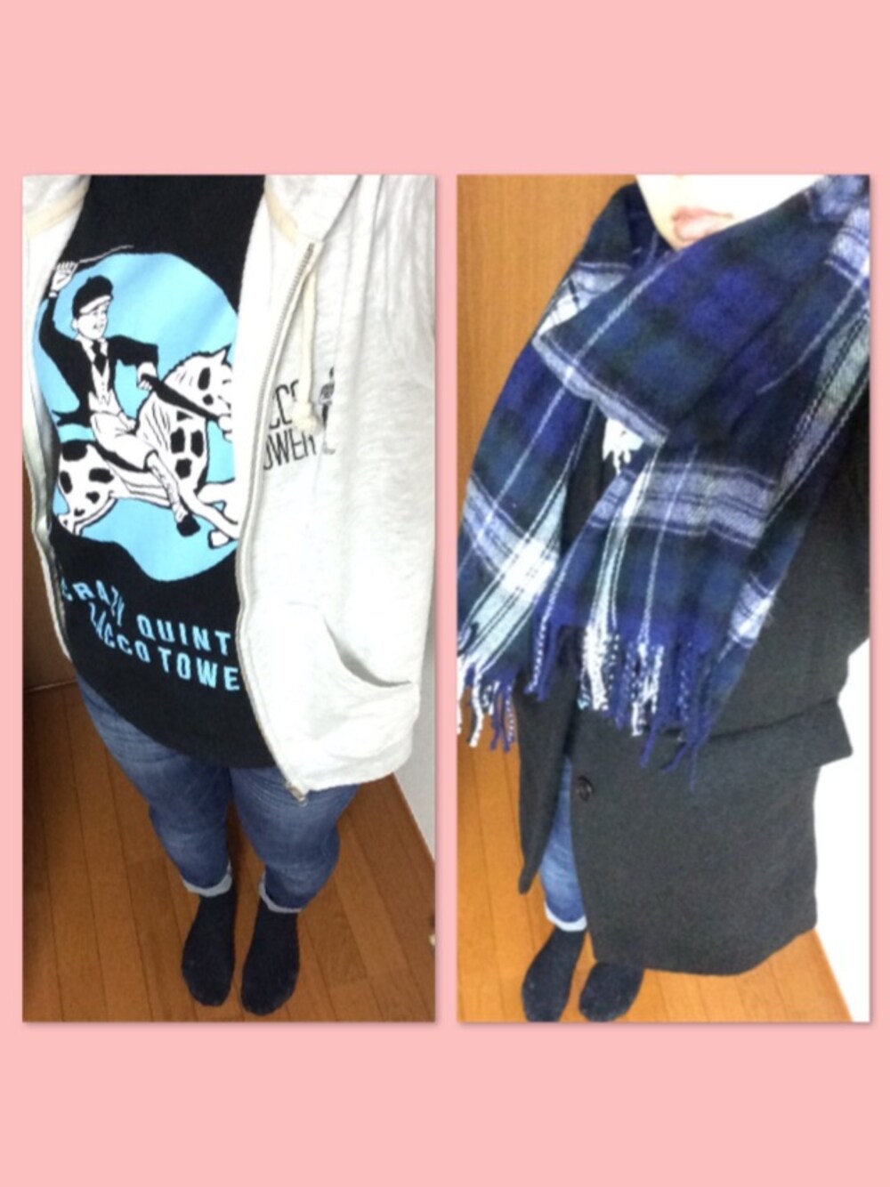 ぱりぱりのストール/ショール「ACチェックストール 461965」を使ったコーディネート