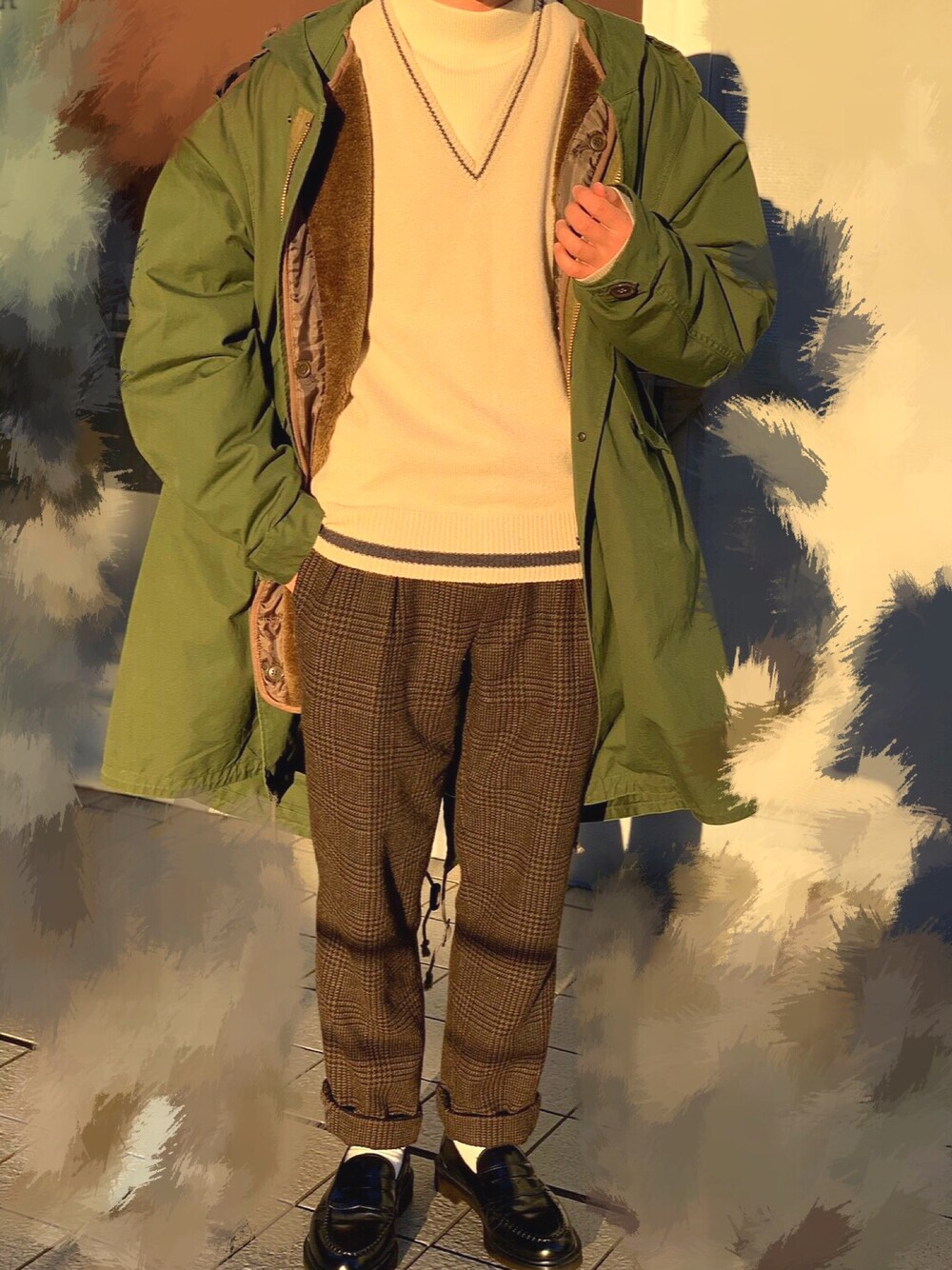#チョコ色に染まれ の企画のため 自分なりにチョコ色コーデを 考えてみました! チェックパンツはミルクチョコ、 ニットベストはホワイトチョコ…? かな?🤔🍫 モッズコートのライナーもチョコみたいないい色だしてますよね!😳 コーディネートが気に入ったら ぜひ、いいね・お気に入り、フォローを よろしくお願いいたします👍