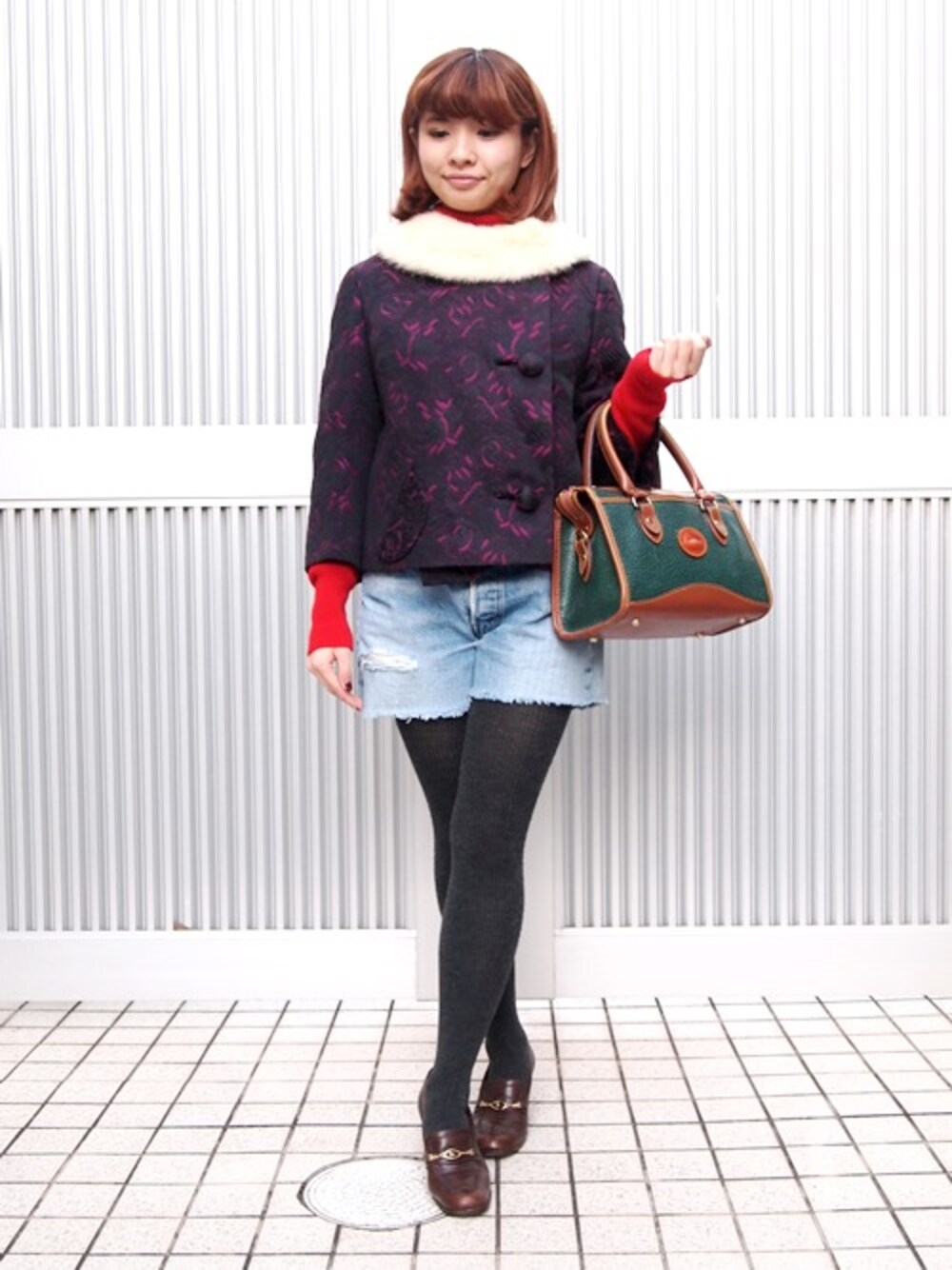 Aラインのコートが華やかな印象を与えてくれますね☆ 首元にファーが有り、華やかさだけで無く、 暖かさもある1着となっておりますよ* 中には滑らかな肌触りのカシミヤセーターを。 タートルネックとなっておりますので、寒さの心配も無し!!!! ボトムはデニムショーツでカジュアル感もプラス! 鞄はOLDコーチと同等の人気! ドゥーニー&バークのハンドバッグとなります♫ 足元はイタリア製のパンプスで上品に。 カジュアルレディスタイルの完成です♫