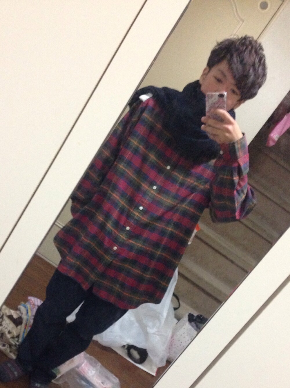 サイズ感をゆったりさせて 首元をさみしく無いように 長めのマフラーを巻いてます!