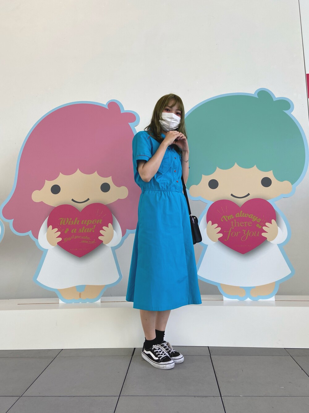 サンリオ展に行きました やっぱり名前一緒だからキキ推しは譲れんよ 服もキキ色ワンピース💙🦋🧚👗