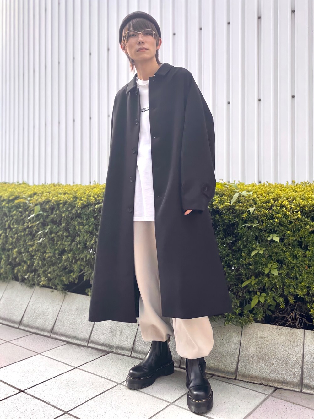 ご覧いただきありがとうございます😌 【セットアップ対応】スムースタッチドルマンステンカラーオーバーコート、BE@RBRICK×BRIDGE SHIP HOUSE L/S TEE、【SET UP - UNISEX】2ポイントルーズスウェットパンツを使ったコーディネート。 ストリート×ロングコート 一見合わなそうなイメージですが、カラーや小物使いなどでばっちり合わせられます! コート無しだとかなりストリート感強めだけど、羽織るだけでキレイめ感がかなりアップ!! キレイめ素材でロングなのがポイント!!! 存在感強めなアイテム一つで雰囲気ががらっと変わります💡 黒×ベージュ×白で落ち着いたカラーを使用するのもポイント。 有彩色を加えるとそのアイテムだけが一際目立つので、無彩色に近い色でまとめるとまとまって見えます。