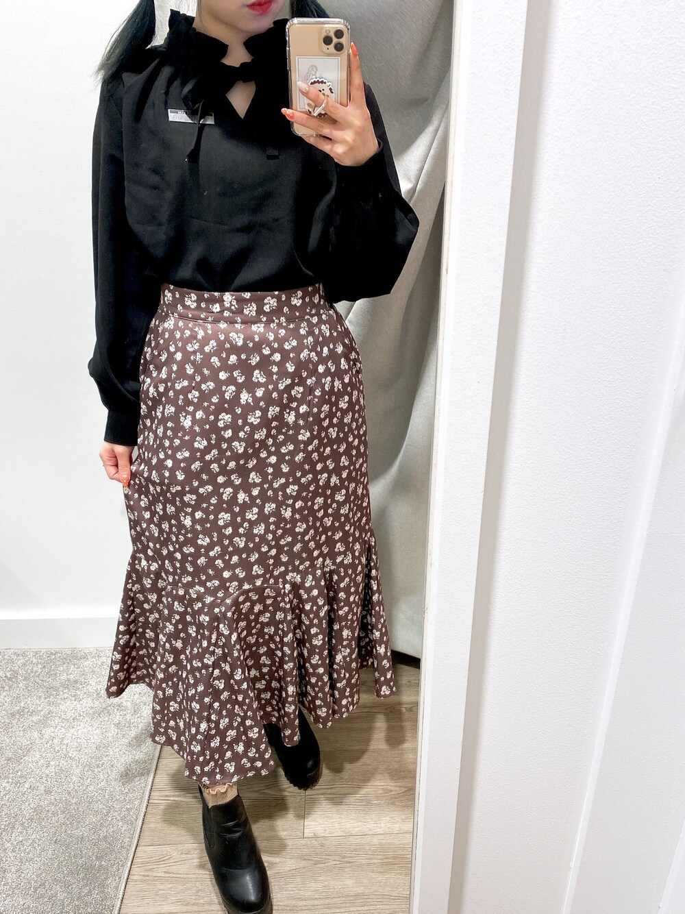 2020.04 配属先のブランド どシンプルで柄も色も無いイメージだったけど こっそり花柄があったので niceの花柄スカート履いちゃった🌷🌼 夏服はもっと色も柄もあるといいなあ 𓂃⋆𓈒𓏸 GRLのサイドゴアブーツは 脱ぎ履きがしやすくて 厚底で身長盛れるし足が綺麗に見えると思ってる! 低 身 長 の ミ カ タ ♛︎
