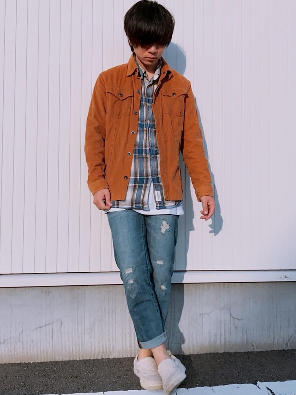 おはこんばんにちは! KAK-KUNですʕ•ᴥ•ʔ いつも、いいね、お気に入りして下さる皆様、ありがとうございます!! お気に入り、フォローして頂きましたらすぐにフォローさせて頂きに参ります♪ 今日は…何もない平凡な日。それがきっと一番の幸せなんだろう。天気も良かったしね)^o^( さて、本日のコーデは 昨日はダークトーンだったので、明るめのトーンで秋コーデ!チェックシャツとデニムが春っぽいので、スウェードシャツジャケットで少し秋らしく。やっぱりカジュアルなのが一番着やすいです(^q^) プチプラコーデの詳細は⬇︎ --------------------------------------- ◼︎トップス ①MEDIUM スウェードシャツジャケット(USED) サイズM ¥900 ②Abercrombie & Fitch チェックシャツ(USED) サイズL ¥1.300 ③H&M ポケットタンクトップ サイズL ¥699 ◼︎パンツ ④UNIQLO ダメージデニムパンツ(USED) サイズS ¥500 ◼︎シューズ ⑤MARQUI キャンパススリッポン(USED) サイズ 26.5 ¥2.100 ◼︎TOTAL ¥5.499 ---------------------------------------