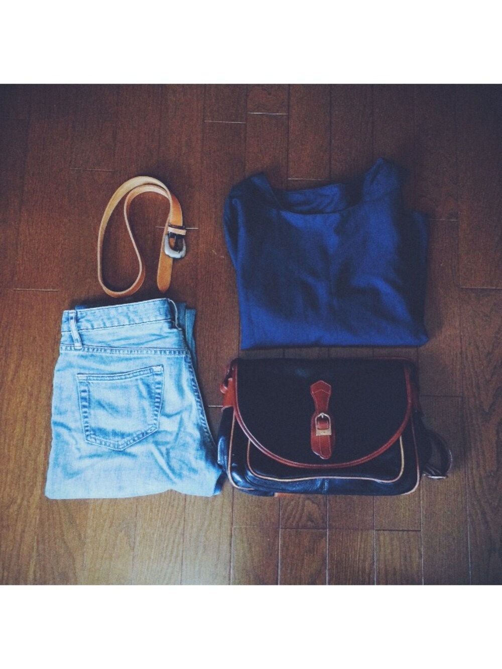 暖かいので春っぽく。 トップス:ハンドメイド ボトムス:ユニクロ ベルト:used バッグ:used