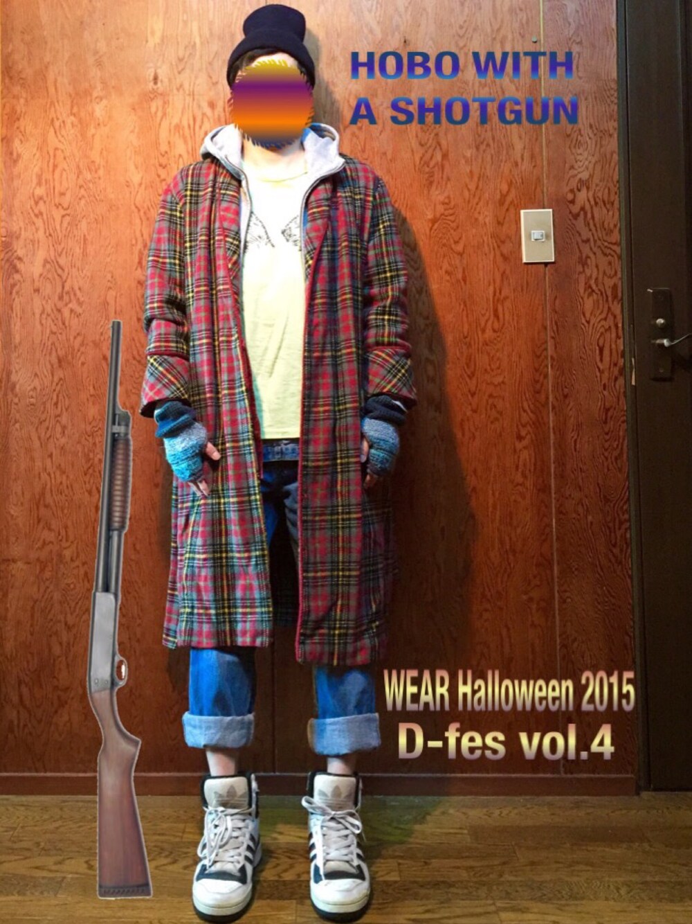 いよいよ!ハロウィン!!!! はい、だだスベってます囧rz えっ? なんのコスプレ? ホーム◯スのコスプレじゃね? 違いますが、その気持ち はい、わかります。 私達、自宅にある服だけで、再現率を追求した結果。 WEARの住人の方が、9割9部わからない、ピンとこない映画の主人公を再現してしまいました囧rz でも再現率だけは高いので、 このまま、突っ走りますwww ご納得いただけない方、 小窓に お目汚しコスプレ師匠八変化 を載せてます。お許し下さい囧rz はい! 映画「ホーボー ウィズ ショットガン」 のホーボーです。 えっ知らないですって! あの! クェンティン・タランティーノと ロバート・ロドリゲスが B級映画館の雰囲気に徹底してこだわった映画「グラインドハウス」の! 劇中に流れたフェイク映画CMが面白いから、ノリで世界中の新人監督からフェイク映画CMを公募し面白そうなCM作品を実際に映画化しちゃおう!! って流れでできた映画を!!!! 勿論、日本で劇場公開されてません。 わかるわけがない!!!!! でも再現率はそこそこいい線いってるはずwwww 気になる方は、是非ググってください。 なんで女子供がキッキャッし、浮かれるハロウィンにこれをとりあげた!!ってなります(笑)→多分。 そんなKY感の否めない、天邪鬼師匠のハロウィンコーデは、 「ハロウィンに浮かれて露出度高めのビッチ共を狙う悪い送り狼に悪質カメ子には、ホーボー様のショットガンが火を噴くぜ!!」 がテーマです。 そしてD-fes vol.4にも参戦します。 主催者様失礼致します(≧∇≦) 黒いニット帽 オレンジ系の暖色チェックガウン ユニクロのグレーパーカー キツネのTサツ デニムのオーバーオール adidasのエルドラド レミントンM870 再現率は高いんですw再現率はw 太く見えるのは目の錯覚か重ね着故! このコーデをチョイスしたのは、きっと師匠がワイドショーで可愛いコスプレの美女達から「一緒に写真撮って下さい!」って言われるイケメンを見て嫉妬しているからなんでしょうwww そんな師匠も一度だけ、一緒に写真を撮って下さい!!って長蛇の列を作った事があるそうです(^^) それは数年前にアジア某国での事。 欧米人や現地人、僧侶に至るまでが師匠に群がり手を合わせ、写メを撮りまくり、 挙げ句の果てには現地の映画監督を名乗る男が目を輝かせながらスカウトに来たそうな(O_O) その時の師匠の風貌は 石鹸でしか洗わない故、ゴワゴワの長髪 三か月、一切剃らないロング髭 シワシワの麻のシャツ 当時の師匠は キリストと野武士のコスプレは常時完璧だったそうな(笑) ※ちなみに映画オファーは、正義のムエタイ選手と極悪サムライ空手家のアクション作品だったそうです。無論体格でNGだったそうなww