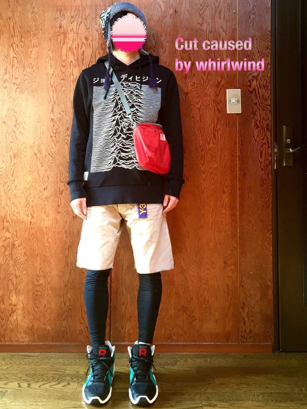 三人の殺しを考えついた理由は何だ!! 他人に恨みでもあるのか!? 社会に不満でもあるのか!? 何でそう平気な顔をしていられるんだ! 〜昭和の伝説的空想科学ドラマ 「怪奇大作戦」かまいたちの回より。 ラストシーンで、かまいたち現象を利用し殺人を繰り返した通り魔が逮捕されてもなお、無表情で黙っている事に対し刑事が投げかけた言葉。 この怪奇大作戦のかまいたちの回は 中々怖い系の内容なんですが(O_O) 空想科学系ドラマにも関わらず捜査官が勘のみで捜査をしまくり、 容疑者の部屋に勝手に入ったり尾行したり、被害者の変わりにペットが襲われて歓喜したり、もうどっちが犯人なのかわからない昭和カオスが満載です(O_O) ラストは誰に言ってるのかさっぱり囧rz 興味のある方だけどうぞ(^^;; サイモン&ガーファンクル的な冬の散歩道にはご用心。 何処からともなく、つむじ風と共に現れて人を切りつける「かまいたち」が出やすい時期ですね(^^;; 出遭った人は刃物で切られたような鋭い傷を受けるが、痛みはなく傷からは血も出ないぐらいだそうです。 妖怪の仕業か!? 突風による低圧化の真空現象か!? 正体は、はてさてですが冬のこの時期は乾燥して風の強い日はカサカサしてアカギレや唇割れとか結構おきますよね(^^) なので「かまいたち」は俳句における冬の季語だとか(^^) 師匠も今朝唇がちょっと割れ気味です。 ↑ 絶対、酒飲んでそのままコタツで朝を迎えたせい囧rz そんな師匠の今回のコーデは、 「冬の深夜徘徊はさみーし、かまいたちこえーし嫌だぁぁ!でもリップクリームとビールを買いに行かなきゃコーデ」 です(O_O) 突風が来ても大丈夫なようにパイロットキャップ風ニット帽。 かまいたちより早いスピードで自転しているかも知れない、中性子星の波長のグラフィックでお馴染みのジョイデビジョンパーカー(^^) ちょっとした買い物や散歩では超便利なバッグンノウンのポシェット。 早く走れるように切りっぱなしのショーパンにヒートテックのレギンスです(^^) スニーカーはリーボックの「神風」モデル。 かまいたちに対抗できるのはカミカゼだ!!っと師匠がのたうちまわってます(O_O) さぁ!!これで!いざ外に!!!! と、思いきや!玄関でて3歩で引き返して、明日にすると師匠囧rz せっかくの散歩がてら運動不足解消が!! と言うと、師匠が、 「散歩なら毎日してるよ、かまいたち並みだから見えねーんだよ。」 かまいたちは、師匠の贅肉を切り落としてはくれないようです(O_O) いつか怠惰な生活をスパッと断ち切ってみたいものです(^^)