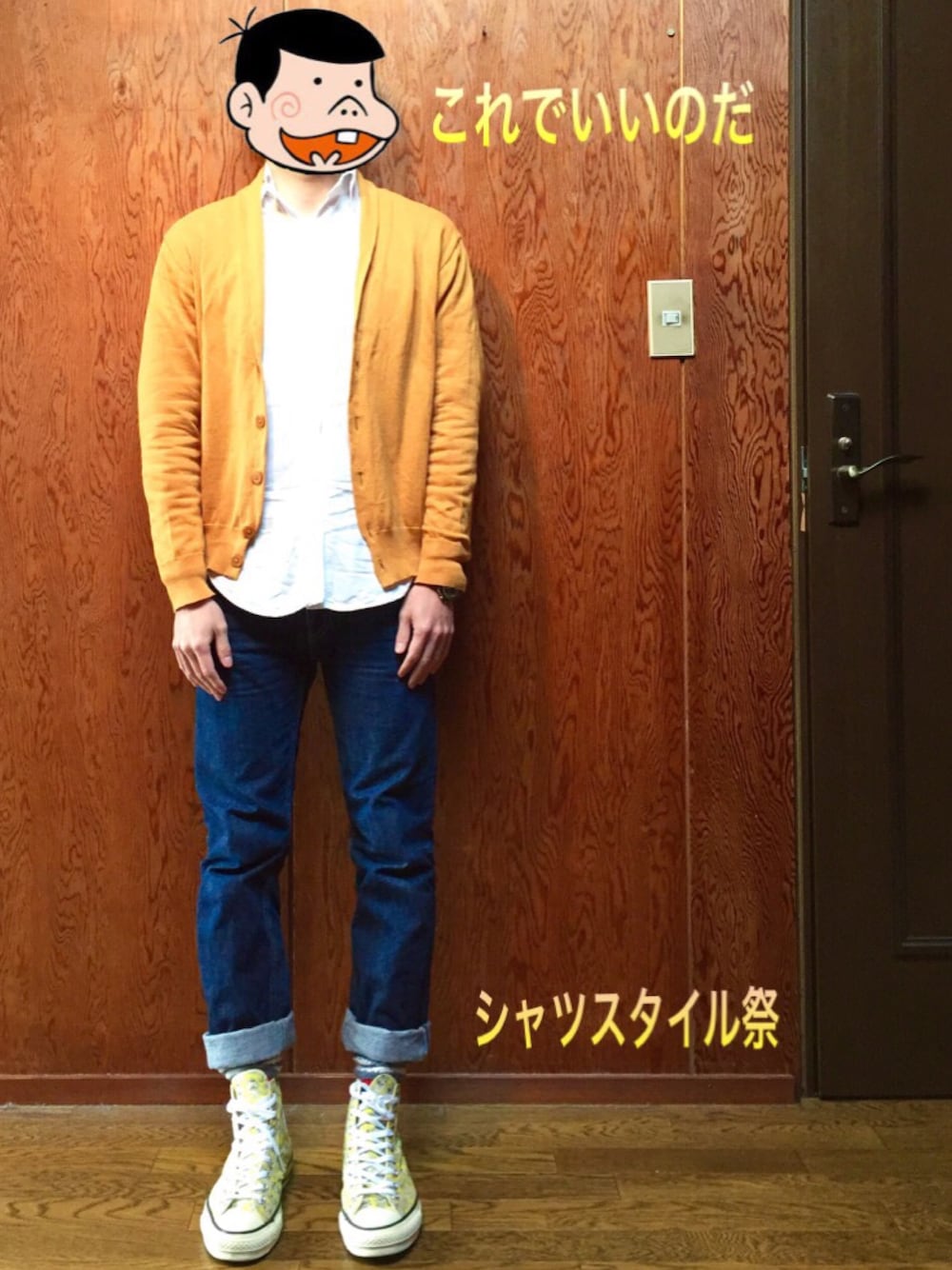 西から昇った おひさまが〜〜 東へ沈む〜〜 あっ!!たいへん!!! これでいいのだ〜〜 これでいいのだ〜〜 天才バカボンの歌 抜粋 昨日は節分だったのだー 豆がないから、 TSUTAYAであり金ばらまいたのだー リアル鬼ごっこの トリンドル玲奈の着替えシーンに大興奮なのだー 天使のブ◯なのだーー カレー食べすぎて恵方巻食べきれないから、 切り分けて北北西向く振りして 南南東向いて食べたのだーーーー 食っちゃ寝食っちゃ寝で、 師匠の顔が リアルバカボン見たいになっているのだー そんな師匠の今回のコーデはシャツスタイル祭に参加するのだーー 主催者様よろしくお願いしますのだー シャツはトムブラウンで仕立てよく、とっても丈夫でシルエットが綺麗なのだーー でも師匠太ってぱつんぱつんなのだー カーディガンはジャーナルで、今流行ってると噂のからし色のショールカラーなのだー あくまでもネット情報なのだー 赤塚先生作品の進化系、おそ松さんが流行っているので、ちび太のおでん! おでんにはからし! だから、からし色なのだーー パンツはシャマなのだー 時計は西から昇った おひさま!! それは、まさにオリエント文明!!! だからオリエントのクォーツなのだー! スカイスポーツなのだーー パイロットや船乗りが設計しただけに冒険者のための時計と言わんばかりの! 世界時計など、かなり考え込まれた機能性が抜群なのだーーーー スニーカーは コンバース×バカボン バカボンのパパが自由の女神のコスプレしたりレレレのおじさんがいたり、かなりポップなのだーー リップスライムのアルバム見たいな雰囲気なのだーーー 師匠、このスニーカー履きたかっただけなのだーー これでいいのだーー これでいいのだーー これでいいのか?(O_O)