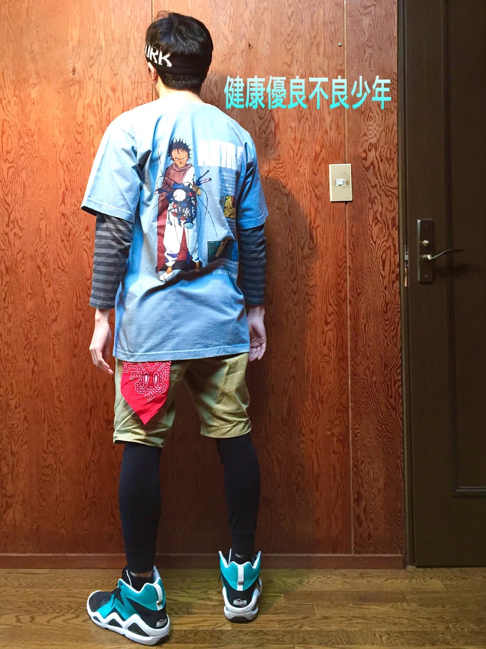 師匠 「よう、どうした。揉め事か?」 私 「ああ。でも、もう終わったんだ。もう少し早けりゃお前にも見せてやれたんだけどな。」 師匠 「俺はまた心配しちまったぜ。またベソかいて泣いてんじゃねぇかってよ。」 私 「師匠、ガキの頃から目障りだったんだよ。何をするにも指図しやがる。どこにでも出てきてボス面しやがる!」 師匠 「お前もボスになったんだろ?この瓦礫の山でよ。」 私 「師匠おおおおお!」 師匠 「『お』と『様』を付けろよデコ助野郎!!」 私 「死ねぇぇぇ!」 はい、この映画AKIRAのくだりは最早2回目ですね(≧∇≦) 前回コーデのコメ欄がネオ東京並みにサイバーパンクな感じになり、思わずアキラごっこをしてしまった私達。 朝まで大友克洋監督の「メモリーズ」と「スプリガン」をひたすら見ていました(^^) AKIRAの実写映画化はいつになるんでしょうね(≧∇≦) ということで今日のコーデはこちらのTシャツがメインです! 春になって、暖かくなってきてやっと着れる!!このAKIRA Tシャツ!!! 師匠意気揚々と着ちゃいました(≧∇≦) 去年の暮れにらーめんごうにて、店長より授かりし家宝でございます!! 店長からAKIRAフィギュアまでもらっていまして、2019年のアキラ覚醒まで足を向けて寝れないという(^^) 背面にAKIRAの登場人物 島鉄雄がプリントされているグラフィックはヨダレ物です。 師匠はこのTシャツに、バイクには乗れないのでスケーター風のコーデにしたそうです。 ※だからと言ってスケボーにも乗れないですが、、、、、、 サイバーパンクシティNYのロゴヘアバンドに、ボーダーロンTでレイヤード(^^) チノショーパンにレギンスで動きやすい感じにしました。 スニーカーはAKIRAっぽいサイバーパンク&クールジャパンな、リーボックの神風モデルです(≧∇≦) そして、このコーデには裏があります。 師匠がなぜスポーティなコーデをしているかと言うと、、、、、 春になり、薄着になるがゆえ、、、、 ダイエットを始めました。 冬眠でしっかりつけたお肉を削ぐために、運動ということを、、、、 Tサツ一枚になる頃には、 師匠の腹のお肉が覚醒するか、 それとも、、、、、 乞うご期待!!!