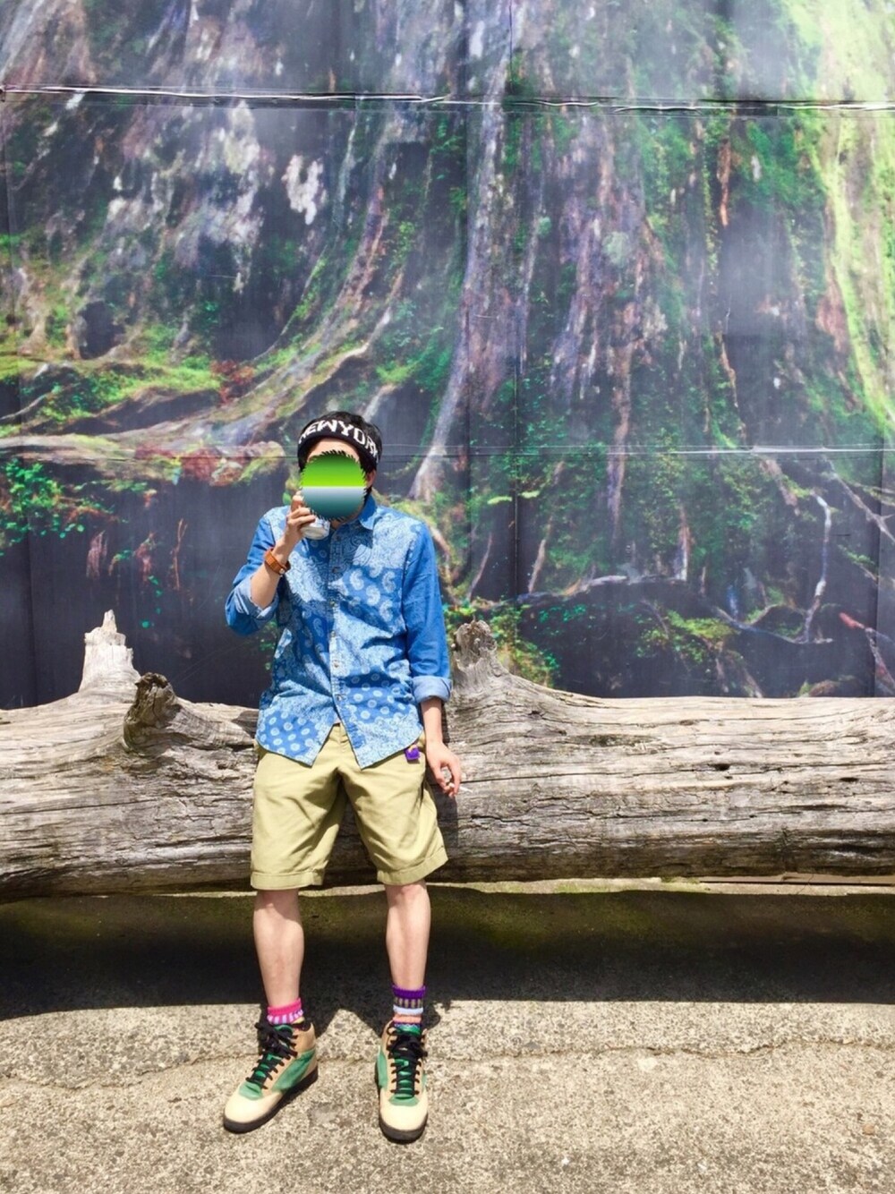 ※お土産屋さんの喫煙所前での写真です。 ※屋久島登山道は全面禁煙です。 ご無沙汰しております。 屋久島に行ってました。 前回の投稿で雨で登山できなーい! ってゆう、かまってちゃん投稿をしておいて、 皆さんから優しいお言葉をいただたにもかかわらず、放置しておりました(O_O) 失礼をば、、、、、 はい、登ってきました。 更に言えば、日にち割と経ってます。 そして登山コーデをあげる予定でしたが、師匠の登山コーデから滲み出るくたびれたオーラとくたびれたボディ、浮きたつ乳◯のため、自主規制をし小窓だけに致します(O_O) ご了承ください。 屋久島、、、、、楽しかったです!! 珍道中でした(^^;; 詳細はブログとかでやりやがれ! ってなるので、かいつまんで言うと。 ・雨が降り登山を断念、次の日にしようという事で昼間からひたすら飲む。 ・登山当日朝4時出発にも関わらず、2時まで飲み騒ぐ師匠。2時間睡眠で大頭脳氏のビンタで目覚め出発。 (あの睡眠時間で往復22kmの登山できた事が凄いですが、師匠の騒ぎとイビキで睡眠時間0の大頭脳氏の方がやばいです。) ・途中まで感覚が麻痺して余裕をぶる師匠。登山後半戦で無論ウルトラグロッキーで縄文杉を堪能。膝が崩壊。 ・宿に戻りまた飲む。ご飯作りを他の人に任せて欅坂46について1人ブツブツと。全員の殺意を垣間見ました(O_O) ・次の日に慣れ親しんだ宿を去りフェリーで鹿児島へ。鹿児島の屋台村的なところでチビチビと、、、、、、 ・更に次の日博多にてWEARのokamoto様と合流しました。 そのまま帰りのバス出発まで約7時間飲み続けました(^^) 本当に優しい方で楽しいお喋りに花が咲きました! (そのはず!迷惑かけてないか不安) あの刺身とイワシ明太子の味は忘れません(≧∇≦) と、いうことでずっと飲んでばかりいる旅でした(O_O) 二日酔いなのか師匠、帰宅時に駐車場精算機に間違えて大頭脳氏が財布に突っ込んできたフィリピンペソを500円玉と間違えて投入し、精算機を詰まらせていました(O_O) ん?屋久杉?縄文杉?? あっ!えっ!それは、、、、、、 ガイドブックでも読んでいただければw やはり旅行というものは昼から浴びるほど飲む開放感、美味しいご飯、見聞を広めるチャンス、素敵な出会い、これがあるからやめられませんね(^^) 綺麗にまとめました(^^) 師匠のコーデは屋久島を去る際のもので、 屋久島と色んな意味でかけ離れた場所 ニューヨークのヘアバンド。 リゾート感を出そうとした、 バンダナ柄シャツ。 2日目のくっ◯いショーパン。 2日目の厚手の柄ソックス。 登山をなめすぎている、 エアウォークのスケーターシューズです(^^) 旅も佳境になるとこうなるものですね(^^;; 次回より真面目にコーデと節酒をしていきたいと思います(O_O) いつも酔っ払ったようにトチ狂ったコーデと文章だろーが!!ってゆうのは言わないお約束ですよ(^^)
