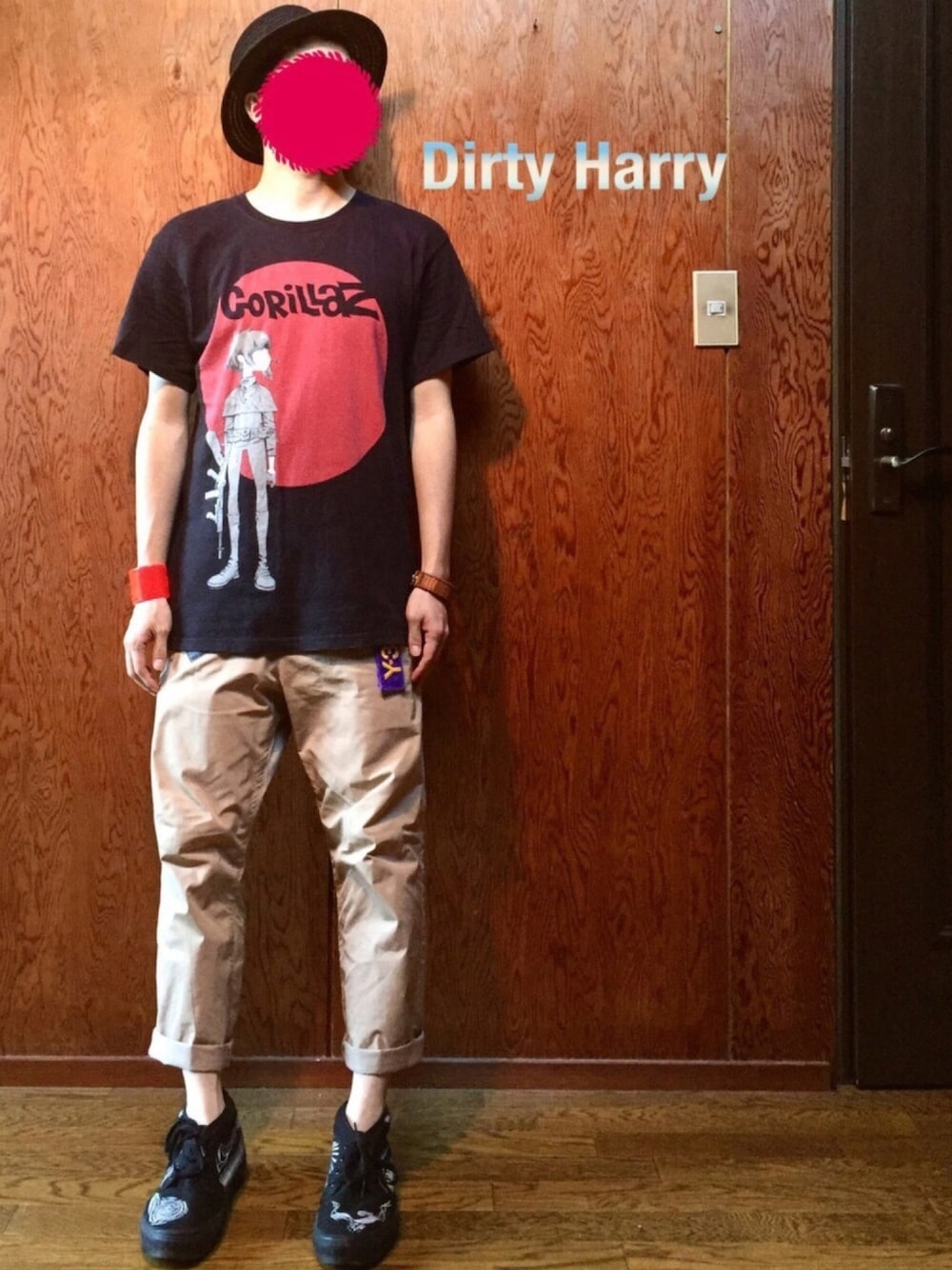 風車、大地の風車、 手に手を取って永遠に回れ いつまでも回れ、あなたと私、 風車、大地の風車、 ついてこれるかい? 「FEEL GOOD Inc.」by ゴリラズ くどいようですが、梅雨ですね。 雨が降り降り、止んでも曇りでじとーっと、、、、、、、 やってらんねーーー!!! こんな時は私達はひたすらら砂漠系の映画や映像や本を見てます。 表題のゴリラズ「ダーティーハリー」のMVとか、、、、、 マッドマックスとかハムナプトラとか、 シナリオに穴がありすぎてツッコミどこしかないメイズランナー砂漠の迷宮とか、、、、、 ワンピースのアラバスタ編とか、 (セルアウト) 安部公房の「砂の女」とか、 伊坂幸太郎の「砂漠」とか、、あっ! これは違うか、、、、 カラッカラッの砂漠のど真ん中で、プールを広げてビーチパラソルをさして、小粋な音楽を垂れ流し、ビールを浴びるほど飲む!!! と、いう妄想を私達、日々しております(^^;; ええ、ええ、虚しいですよww その妄想にプラスして、 星条旗柄のビキニを着たパツ金美女を裸で追い回して、水鉄砲を浴びせまくったら、そのビキニが水に溶ける素材でうんたらかんたら、、、、、、 と、グヘグヘ妄想が止まらない師匠の今回のコーデは、砂漠で真昼間からビールを飲みたいおコーデです。 黒のカンカン帽的な帽子に、 表題のイギリスの2Dバンド、 ゴリラズのバンTです(^^) 荒野に沈む夕日をバックにゴリラズのギタリスト、ヌードルちゃんがたたずんでいるグラフィックがたまらないです(^^) そこに生地薄めで風通しがよく、バンダナプリント(見えない)が施してあるクロップドパンツ。 スニーカーは砂漠をさまよっても、見つからない世界で一つのニコ氏グラフィックのVANSです(^^) と、ここまで書いて、、、、、 ええ、ええ(O_O) そうです、ネタがカラッカラッですww 梅雨でじとーっとした日々で家からもでず、大の大人の男が身を寄せ合って妄想する日々、、、、、、 やってらんねー!!!!(≧∇≦)