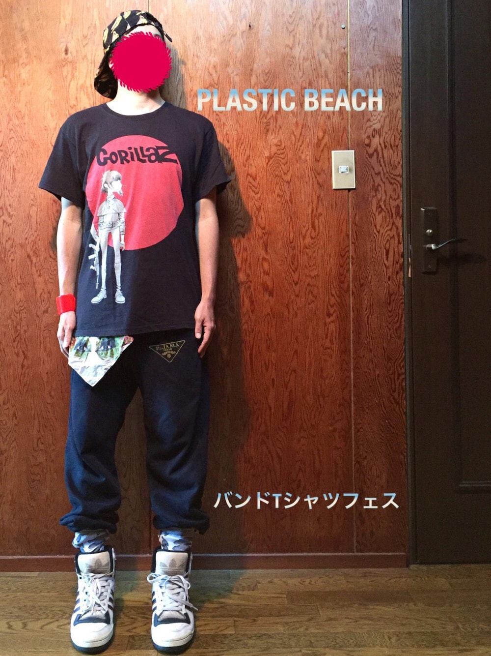 8月10日、、、、、、 今日は、、、、、 帽子の日、、、、 焼き鳥の日、、、、 う、うむ。 道の日、、、、 日本で初めて道路整備計画が実地された日。 この道を行けば、どうなるものか、、 いや違う! 私達にとってはそーじゃない。 安倍なつみの誕生日、、、、 大好きな成瀬心美の誕生日、、、、 おめでとうございます!!!! いや、そうゆうわけでは、、、、、 あっ!指を切った、、、、 バンドエイドの日!!! ん?違う!!! バンドの日!!!!!!!! と、いうわけで。 roomさん主催のバンドTシャツフェスに参加させていただきますっ!!!! 失礼致します(^^) マネーの虎風に言うと、 無類の音楽好きな師匠、、、、、 更にマネーの虎風に言うと、 なんでもちょいとかじれば、 無類の◯◯好きと言っちゃう、、、 そこだけロケンロー吉田栄作な師匠の今回のコーデは、、、、 キャップは、 アンディウォーホルのバナナ柄キャップです(^^) このバナナの絵はアンディウォーホルの代表作の1つですが、 20世紀を代表するバンドで、後のロックシーンに影響を与えまくったアメリカのバンド。 「ヴェルヴェットアンダーグラウンド&ニコ」 の同名アルバムのジャケットでもお馴染みですね(^^) ちなみに師匠が、ベルベットアンダーグラウンドの「サンデーモーニング」を朝一聞いていたら、心地よくなってしまい二度寝し学校を半休。 これが関口宏の「サンデーモーニング」だったらちゃんと起きれたけど、あれの放送日は日曜日だった、、、テヘペロ(≧∇≦) という、くだらない話から始まる、 「ウォーホルと僕」という講演は今回は割愛させていただきます(O_O) メインのバンドTは「ゴリラズ」です! 師匠のお気に入りのバンドTシャツです(^^) ゴリラズは一応!イギリス出身のバンドで、、、、ん?バンド?あっ、いやバンドか的な感じです(^^) と、いうのもゴリラズは現実には存在しない架空のアニメキャラのバンドです(^^) しかし! その狂った世界観とキャラクターに、 楽曲の幅も広く、 ヒップホップなど色んなジャンルのアーティストとコラボしたり吸収したりする奇想天外なバンドです。 MVの世界観もかなり狂っ、、いや面白くぐいぐい引き込まれます(^^) 興味のある方はYouTubeへGO(≧∇≦) ちなみに師匠はこのゴリラズのベース:マードックに似ています(O_O) (体型や皮膚の色、数々の奇行癖がある部分が、、、、、) Tシャツにプリントされているのは、 ギターの天才少女:ヌードルちゃんです。 まだ言葉が喋れない時に日本から宅急便で送られて来た謎の記憶喪失少女です。 このヌードルちゃんがバンドをしながら、記憶を取り戻し、美人女スパイのように成長していく様を見守るのも、このバンドの楽しみの一つです(O_O) 師匠はヌードルちゃんをホルマリン漬けにして、部屋で眺めるのが夢だそうです(^^) 狂ってますね(^^) パンツはパンクドランカーのスウェットパンツ。 そこから垂らしているのはバンド「女王蜂」のバンダナ。 スニーカーは adidasで、 ヒップホップの伝説的存在、「RUMDMC」モデルです(^^) ここで師匠が 「RUMDMC、N.W.A、黎明期のヒップホップと僕」 という題で講演をしたがっていますが、 きっと毒にも薬にもならないような内容に、 多分、きっと、大概、ほとんど、必ず、 滑りまくる小ネタを挟んで、 ダラダラとなることを間違いなしなので割愛し、 日付け変わる前に、このへんで(≧∇≦)