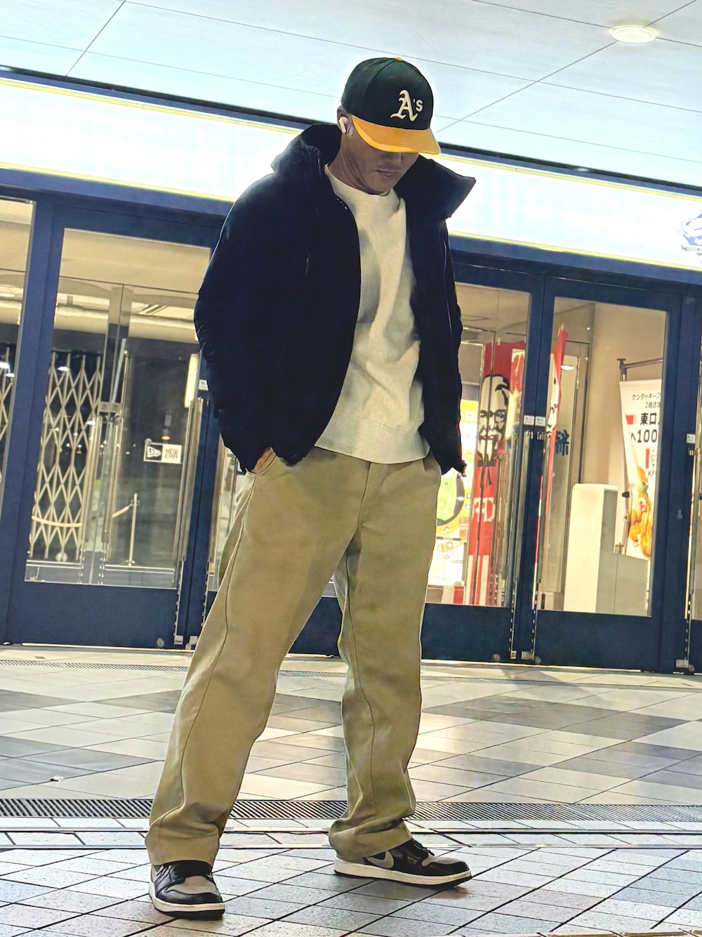 今日はまたみんな大好きディッキーズとデサントオルテライン水沢ダウンのコーデです⚡️ ヘッドはハズしのNEW ERAオークランドアスレチックス🧢 アウターはデサントオルテラインマウンテニア インナーGUベビーウェイトクルーネック パンツはディッキーズ874ベージュ シューズはNIKE エアジョーダン 1LOW OG "'Shadow" あとまだUSJとUFJをたまに言い間違えます✌️