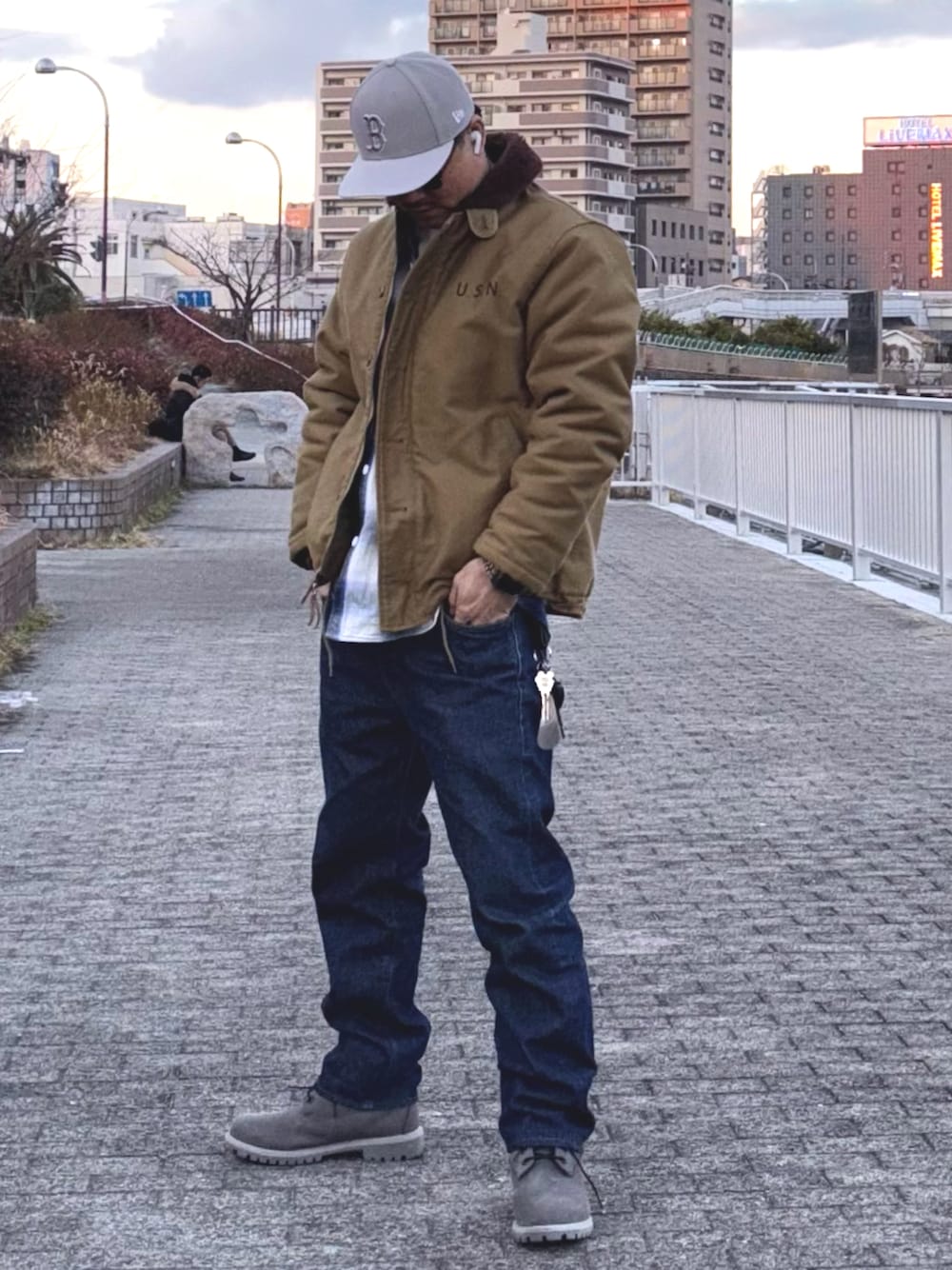 ケンさん主催のミリタリーフェス2025という事で僕も不束者ながら参戦します‼️ ミリタリーアイテムはN-1デッキジャケットだけですが、上手くコーデ出来たかなと思います✌️ こだわりはキャップのつばのスウェードと Timberlandのスウェードをリンクさせた点です🎵 インナーはキャップとブーツがグレーなんで相性のいいブルーチェックのネルシャツを持ってきました🤗 ヘッド NEW ERA ボストンレッドソックス カスタム🧢 アウター HOUSTON N-1デッキジャケット インナー HOUSTON パンツLevi's501 MADE IN USA👖 ブーツ Timberland あと、ミリタリーをミニタリーだと思ってました🤫