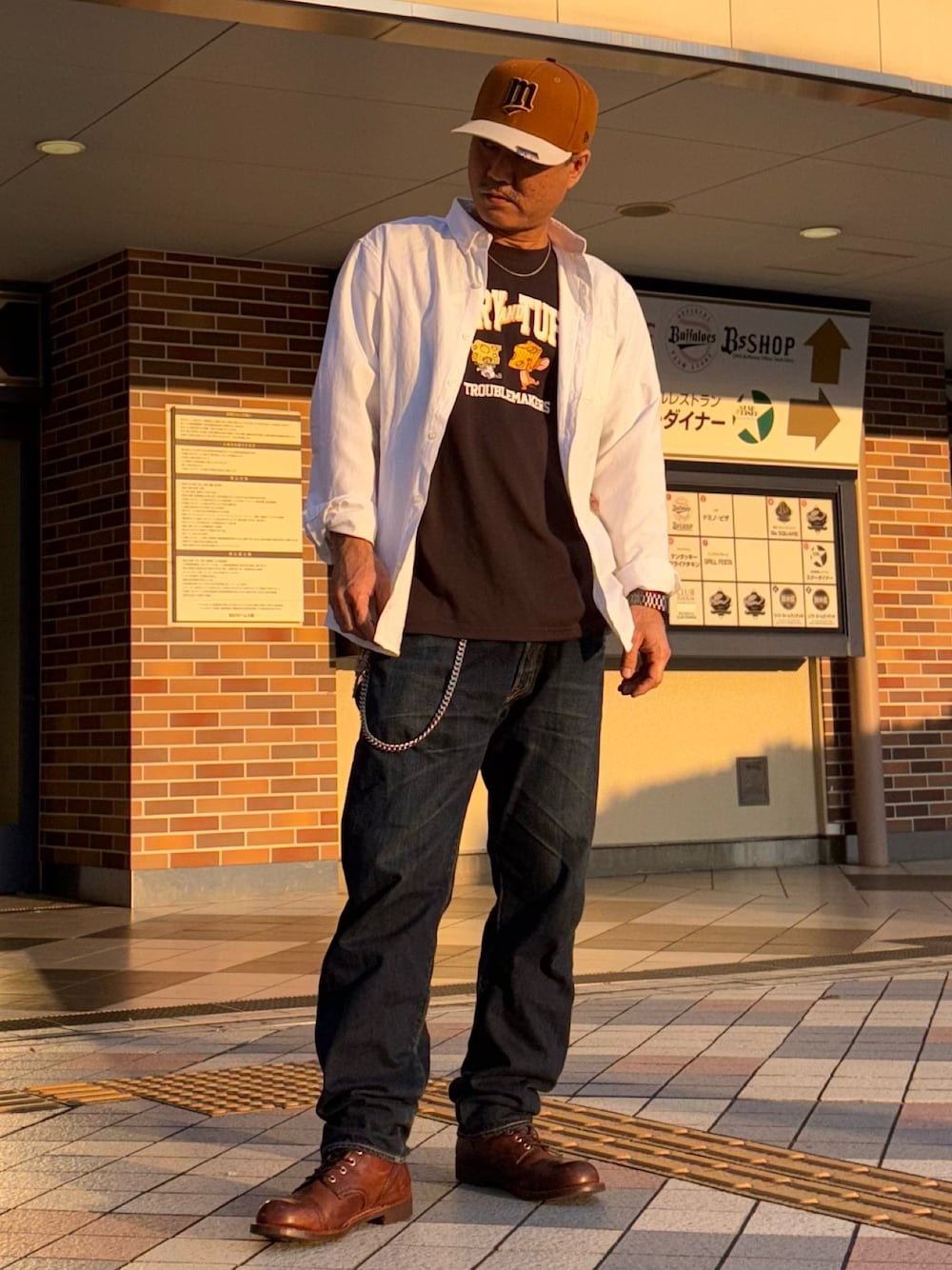 今日のNEW ERAは59FIFTY Minnesota Twins CUSTOMです🧢 夜勤明けで朝焼けが凄く綺麗な朝でした🌆 娘にもらったTom &JerryのTシャツがポイントです🐱🐭 ブーツのレッドウィングの本社があるミネソタ州とキャップのミネソタ・ツインズをリンクさせました✌️ついでにキャップのブラウンがブーツとバイザーがシャツのホワイトをカラーリンクさせました☝️🤨 あと、練って字を書く時、東のところを車って書きそうになります😅