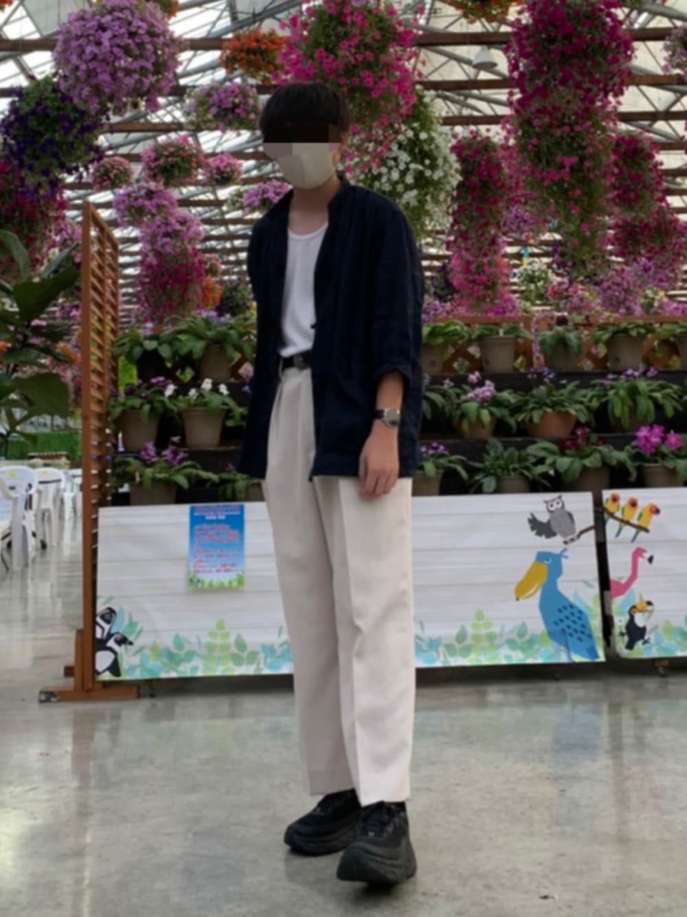 無印のネイビーのチャイナシャツとホワイトパンツを合わせてみました🐲🏮🐼 いいね、お気に入り、フォローくださるとモチベーションになります! よろしくお願いします🙋♀️