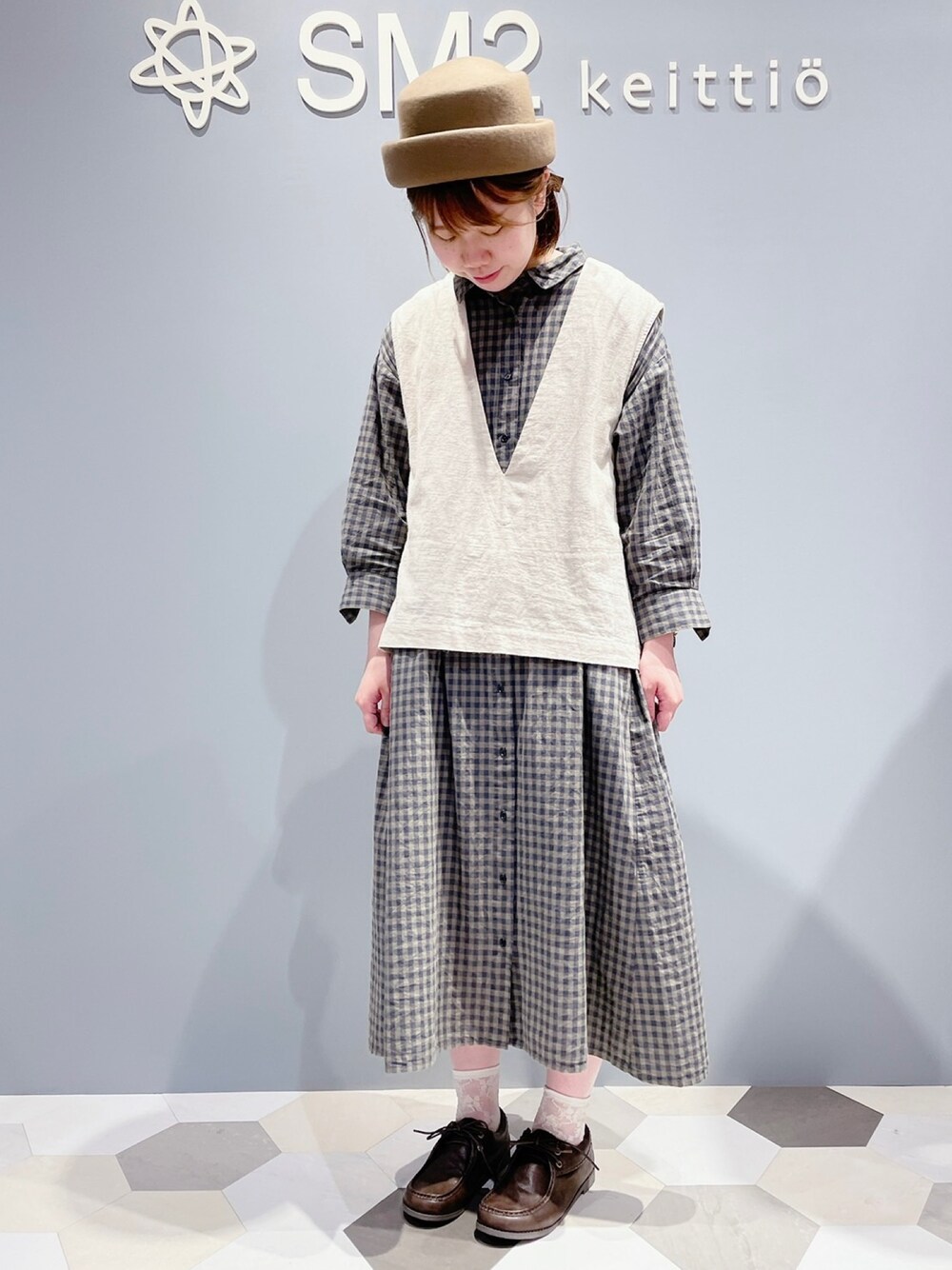 🍁初秋アイテム全品半額以下です! 本日は、ギンガムのワンピースとベストを合わせてみました。 ワンピースは綿と麻の素材でさらっとした肌触りになっており、通年でお使いいただける便利アイテムです。 前のボタンを開けて羽織としてもお使いいただけます。 イオン新浦安店は9時から21時まで営業しております。