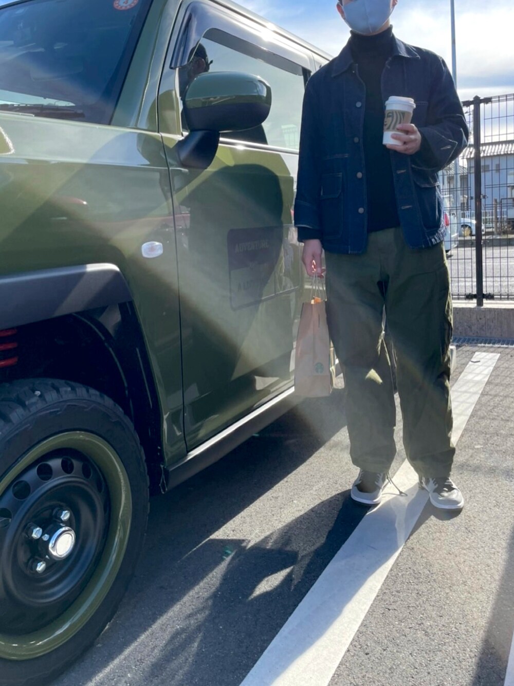 タートルネックのニット毎年買うのでどんどん増える🥸 カーキのパンツとデニムジャケットの組み合わせ好きです◎