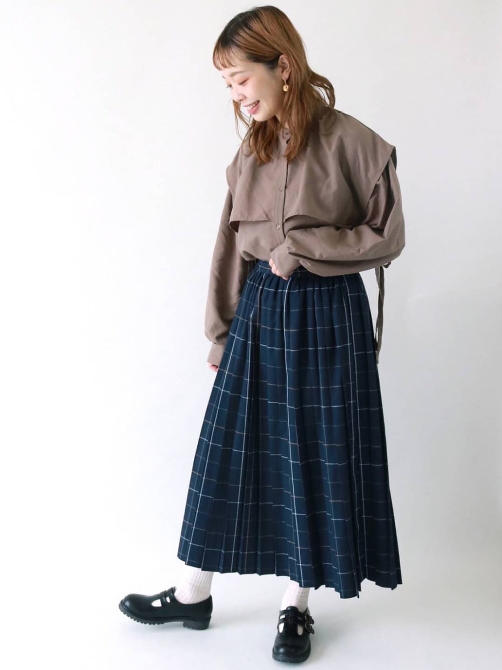 Y u k iのスカート「チェック柄プリーツスカート」を使ったコーディネート
