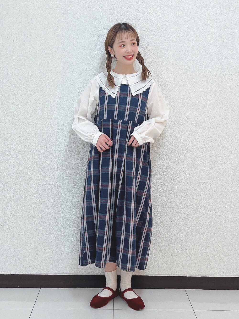 ehkä söpöらしい どこかレトロなジャンパースカート 衿ブラウスとのレイヤードが おすすめ◎