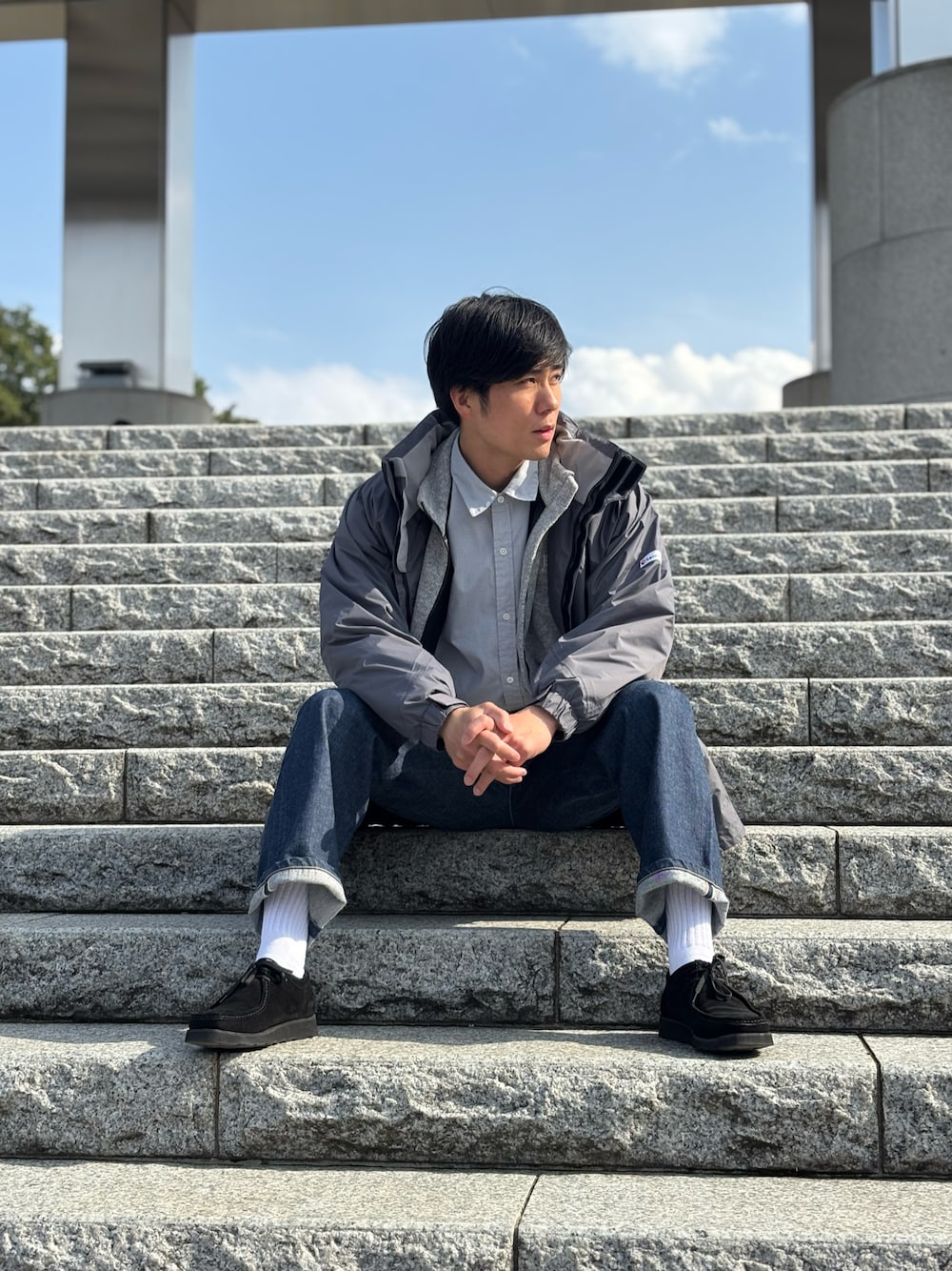 お気に入りのアウター、スティーブンアラン✖️カリマーのマウンテンパーカーと同じくインナーのグレーフリースを合わせてみました。 防寒対策はもちろんのこと、少し長めのミドル丈でコートっぽく着れるためオシャレも楽しめる。 スニーカーで合わせるのも良いですが、大人っぽさをプラスしたかったためクラークスを足元に持ってきました。 ソールはビブラムソールなため歩きやすく、疲れにくい。それでいてオシャレ! アウトドアコーデの完成です。