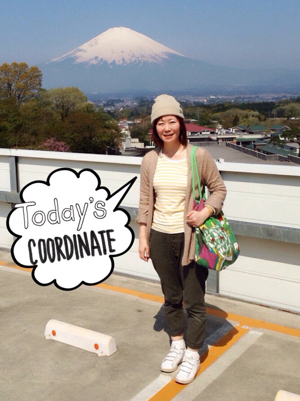 じゃあ、富士山コーデってことで…。ニット帽を加えるだけで友達から褒められます。アラフォーだからねぇ!