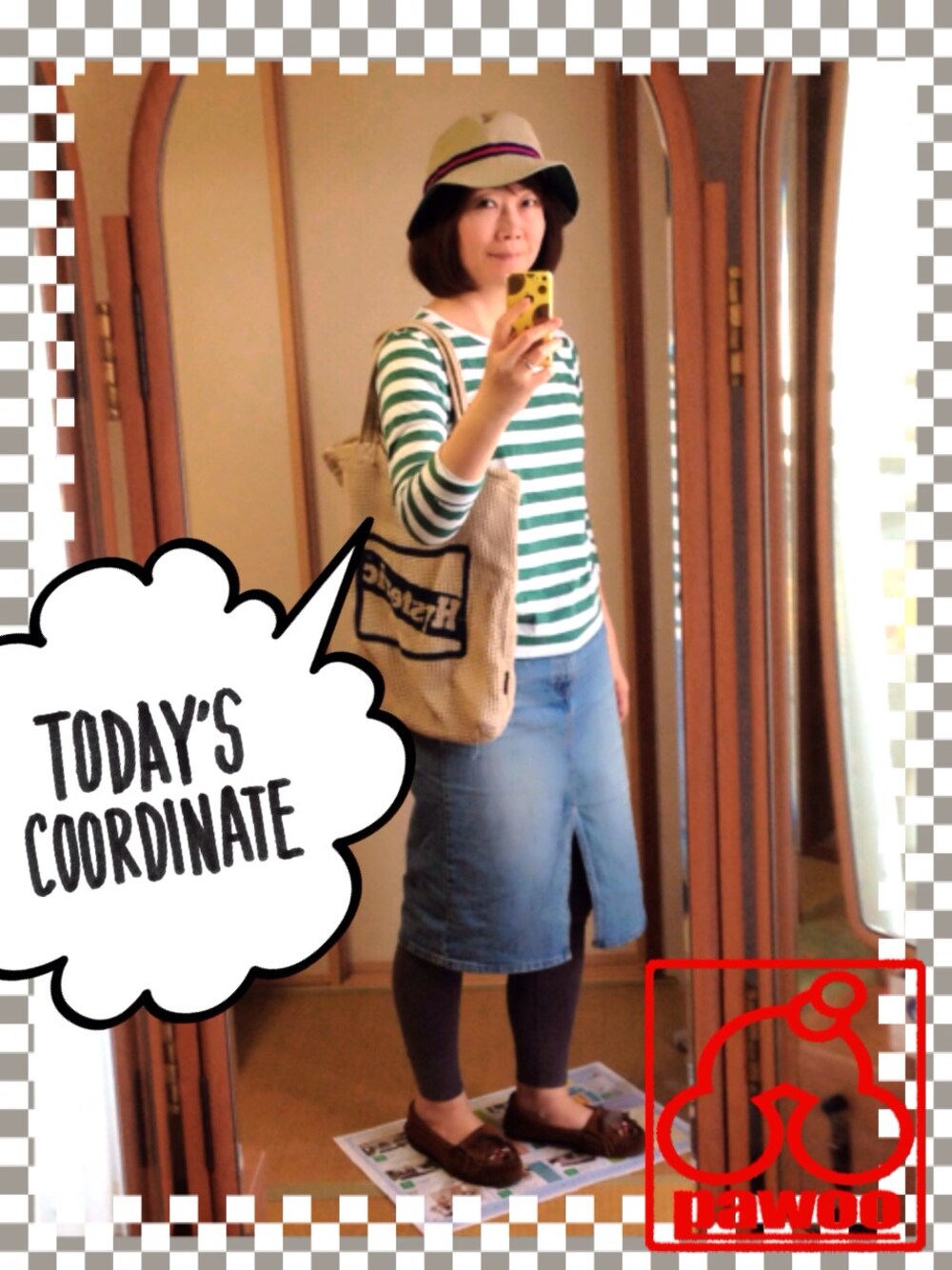 ボーダー大好き!グリーンのボーダー初挑戦!袖を10cm位まくるのがポイントです。あ、今日もボーダーカットソー以外は10年以上愛用しているアイテムです。