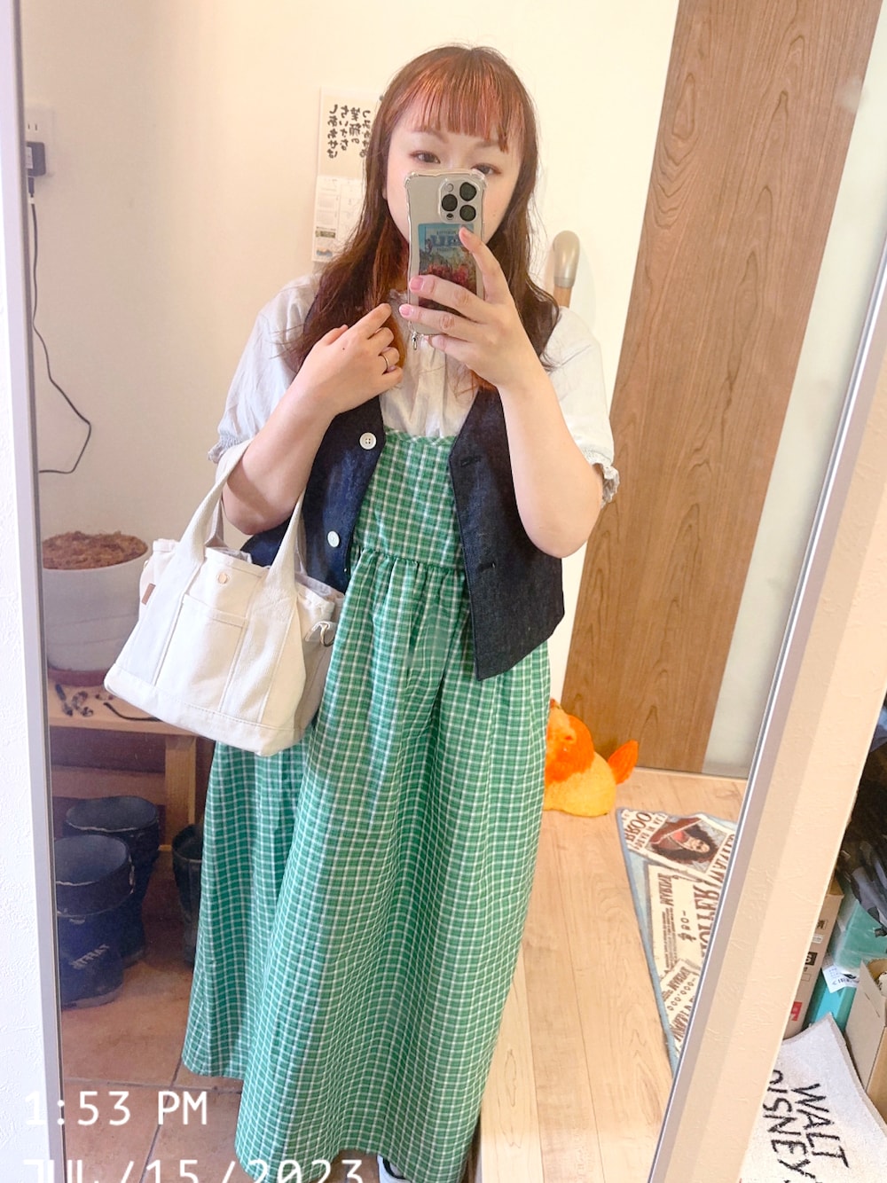 見て頂きありがとうございます🩵 気付いたらフォロワーさんが100人超えていました- ̗̀ ( ˶'ᵕ'˶) ̖́- いつも、いいね&セーブありがとうございます┏○ペコッ ちょっとそこまでコーデです💚 この緑のワンピが気に入りすぎて、何回着るねん✋ってぐらい今年は着倒しております笑