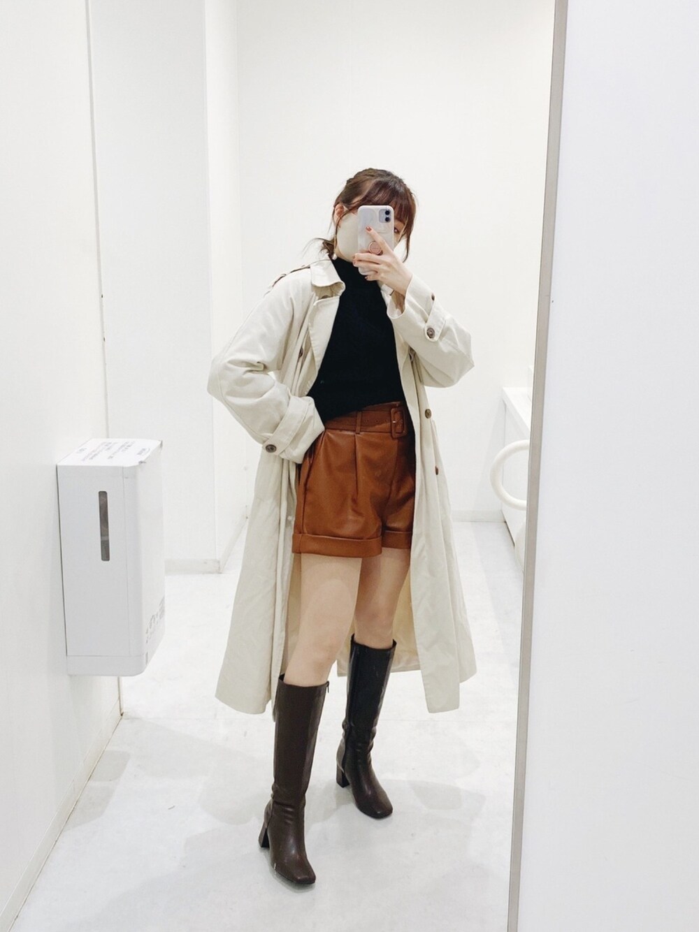 韓国で買ったお気に入りテロテロのトレンチコート!60000Wくらいだった気がする、ちゃんと裏地もついてる( ¨̮ ) ジュエティーのレザーショーパンがとにかくかわいい、主役!🤎