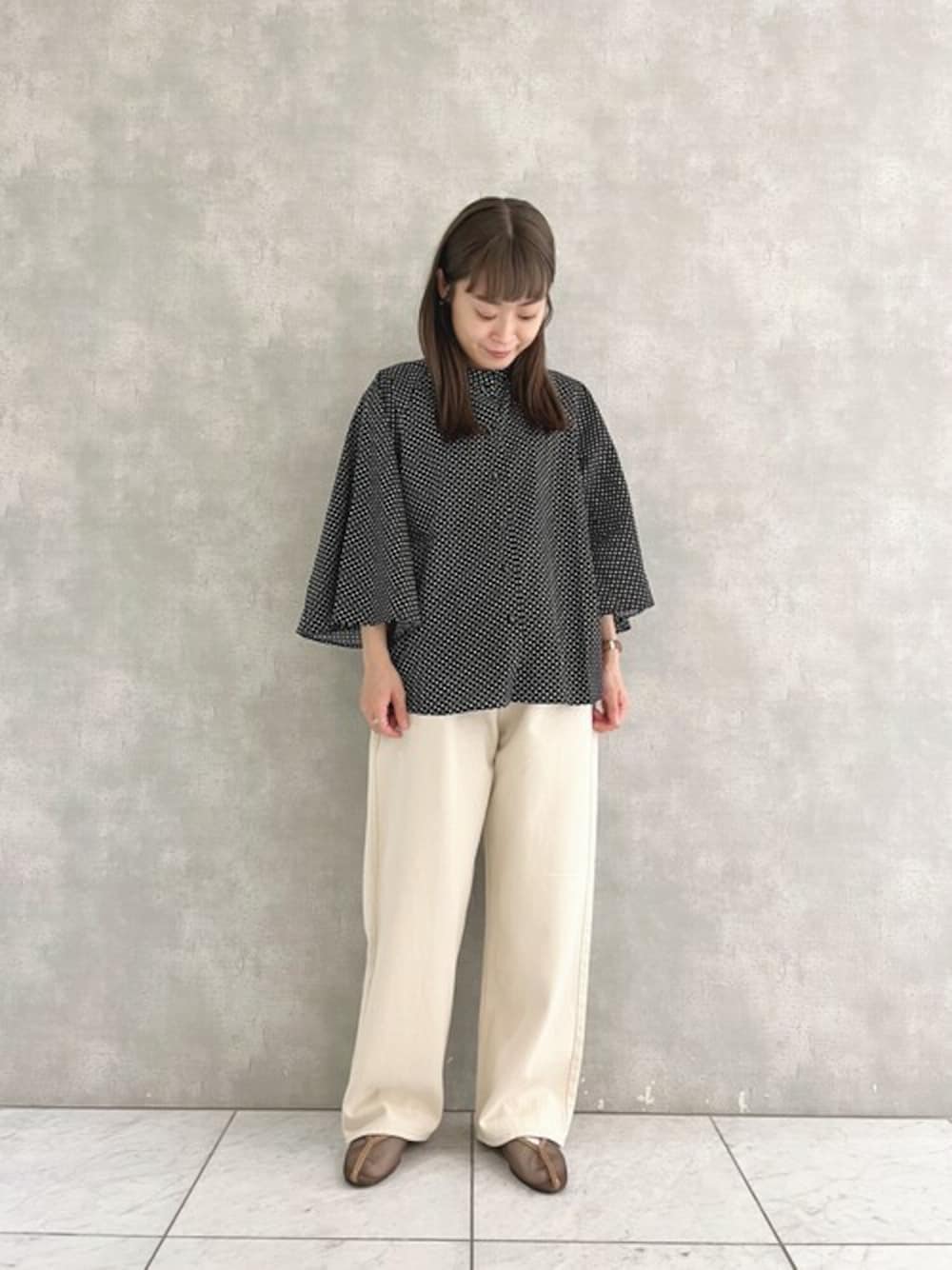 よしかわのシャツ/ブラウス「スタンドカラーケープスリーブワンポイント刺繍ブラウス」を使ったコーディネート