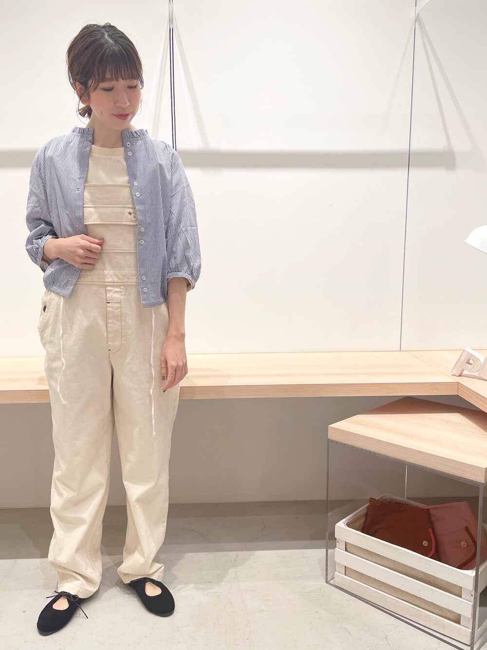 ショート丈のブラウスは今の季節羽織で使っても可愛い便利アイテムです✨ オーバーオールでカジュアルな雰囲気にスタイリングしました。