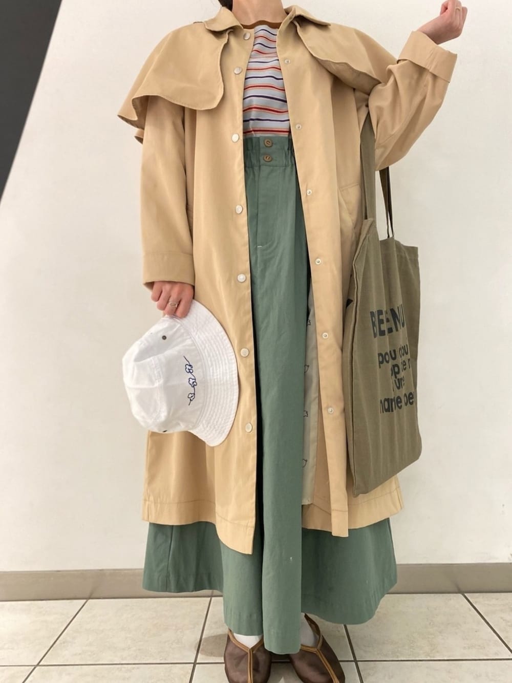 マルチに使えるボーダーは春夏のマストアイテムですね!お気づきかと思いますが、コートのケープ部分は取り外し可能です💁🏻♀️ DAY7🔥