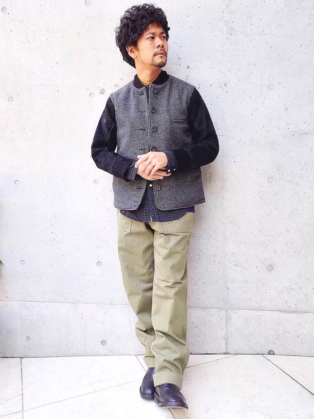 〜ホースハイドジャケット🧥〜 . 男らしい、シンプルなスタイル🎵 ワイドなパンツがGOODです‼️