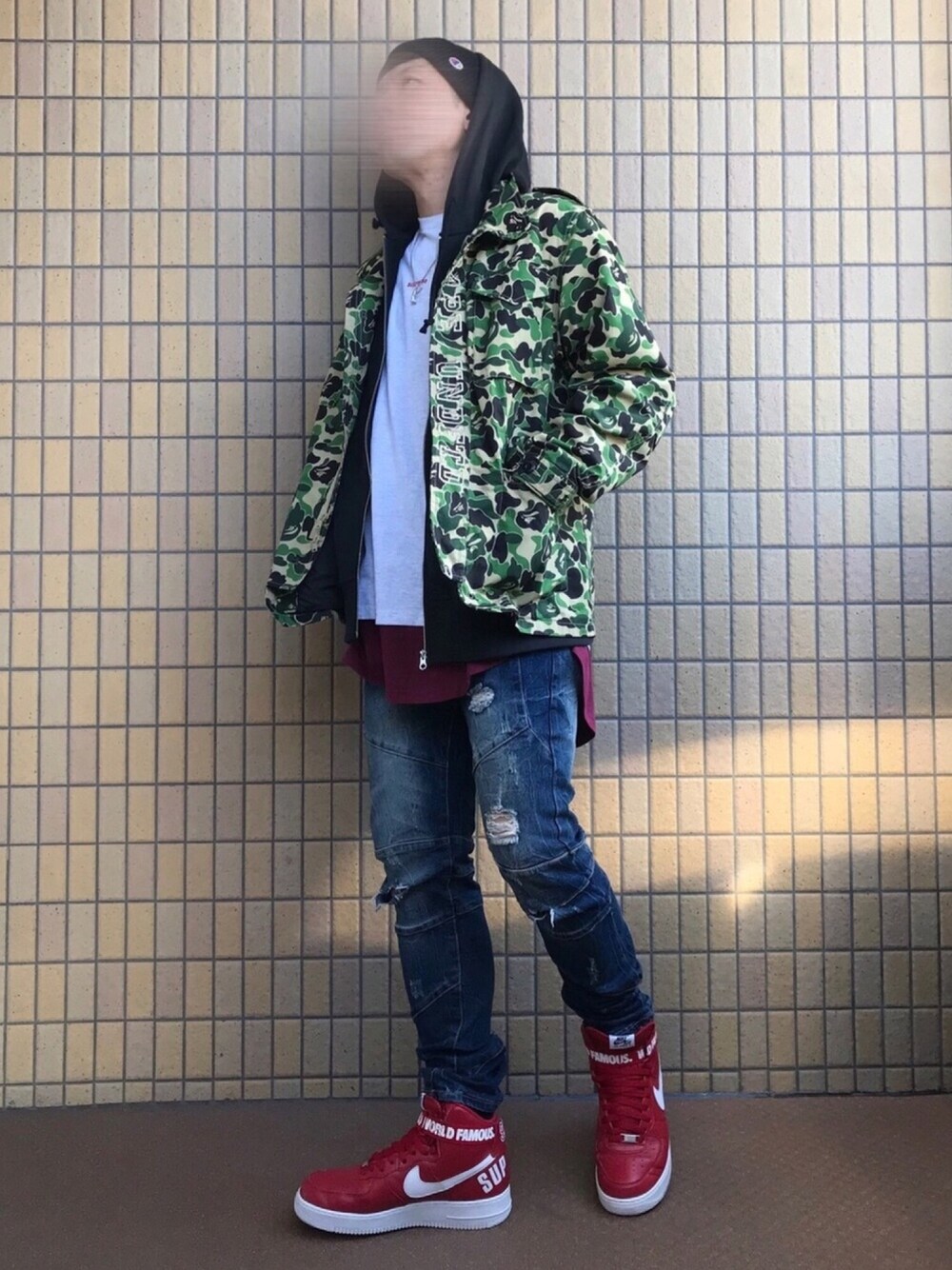 あ、こんばんは|ョ・ω・`) 先週の休みは首寝違えたみたいで首動かず、一日中家にいました😭 一週間は痛み続くと思ったんですが、次の日には治っててびっくり(笑) あれはなんだったのか💀 小窓には迷ったもう一つのコーデを꜀(.௰. ꜆)꜄ 頭と足の色反転してます🔄 大窓の推しポイントは、インナーのTシャツのさり気無い赤いブランドロゴ刺繍が、スニーカーのsupremeとブランド&カラーリンクしてるとこ💕 本日もご覧頂きありがとうございます😌🙏